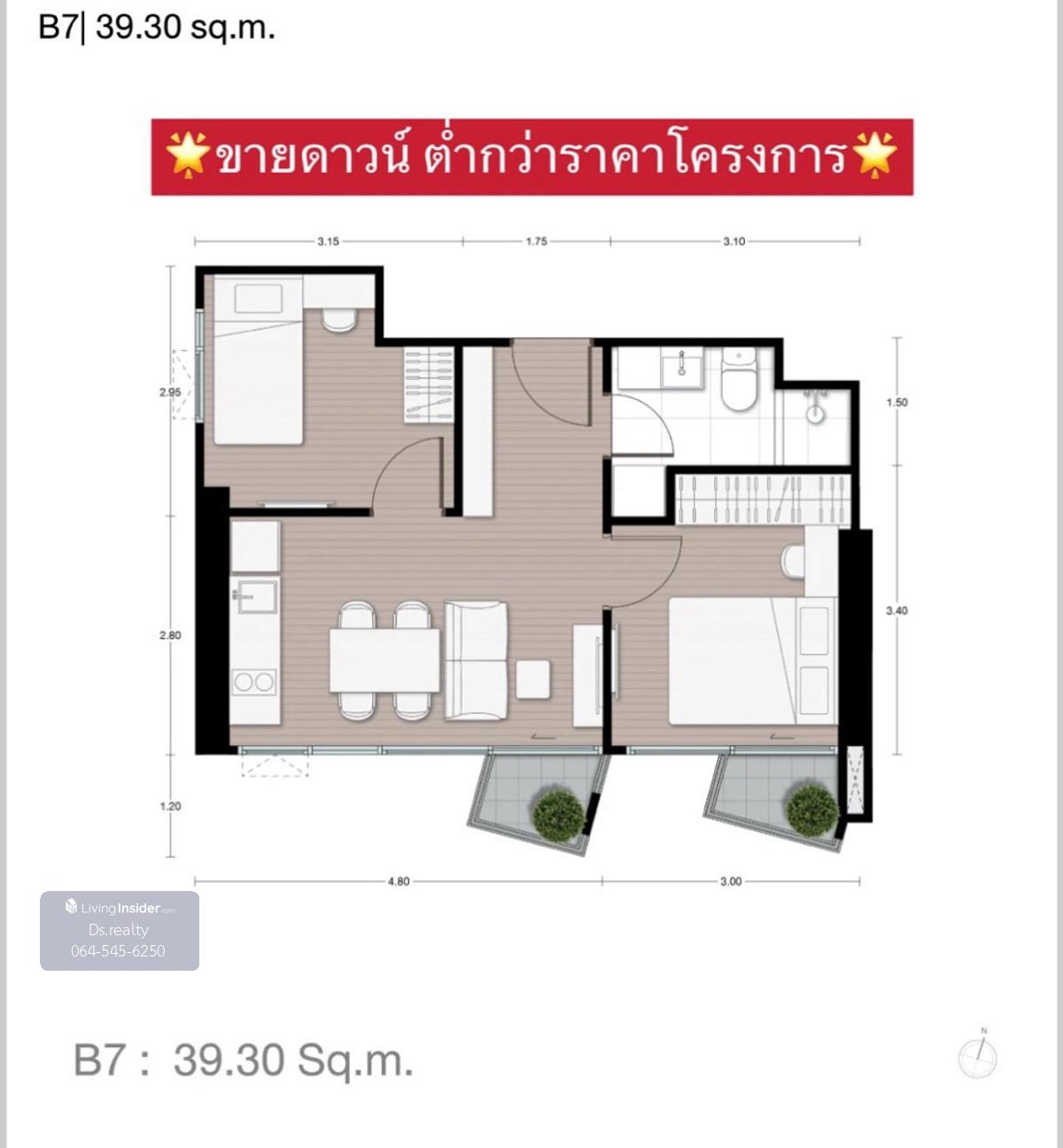 Selling down payment for a room, Building B, 16th floor Size 39.30 Purchase price 5,788,000 baht Selling down payment 499,000 baht (loss) from value 696,400 baht Good position room, beautiful location 1 bedroom, 1 multi-purpose room Corner room, hard to find plan If interested, contact. Contact number