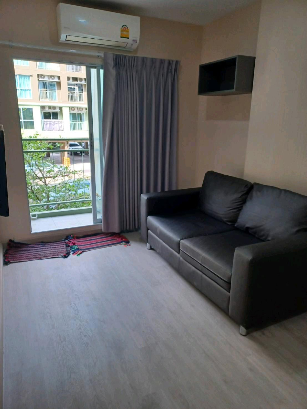 For rent Condo Lumpini Place Bangna Alley behind Central Bangna, Building B, 2nd floor, balcony facing north. Room size 26 square meters Equipment : 2 air conditioners Water heater Microwave Refrigera