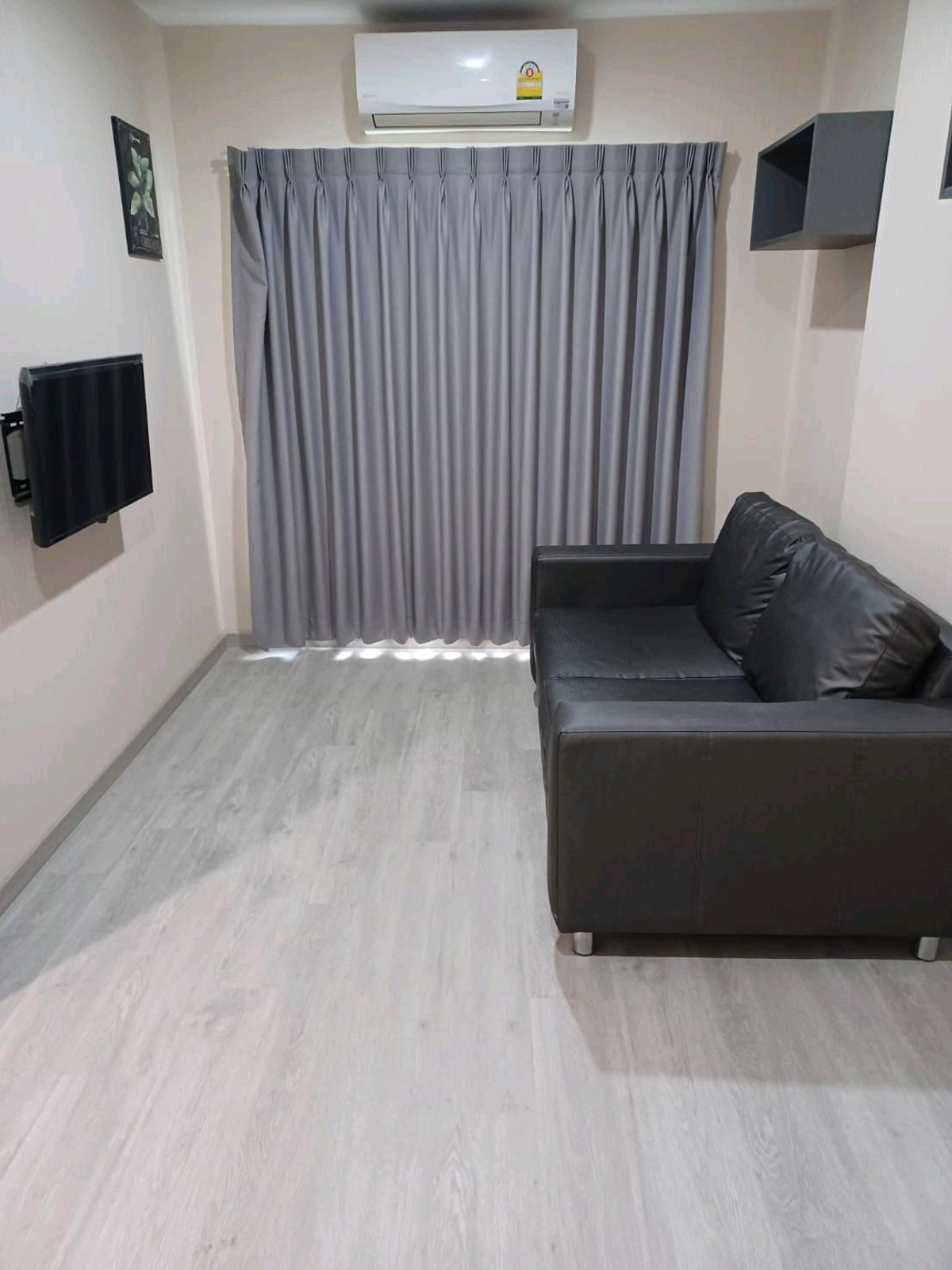For rent Condo Lumpini Place Bangna Alley behind Central Bangna, Building B, 2nd floor, balcony facing north. Room size 26 square meters Equipment : 2 air conditioners Water heater Microwave Refrigerator Dining table washing machine Living room TV TV shelf Bed, mattress Price 8,000 baht/month Contact number