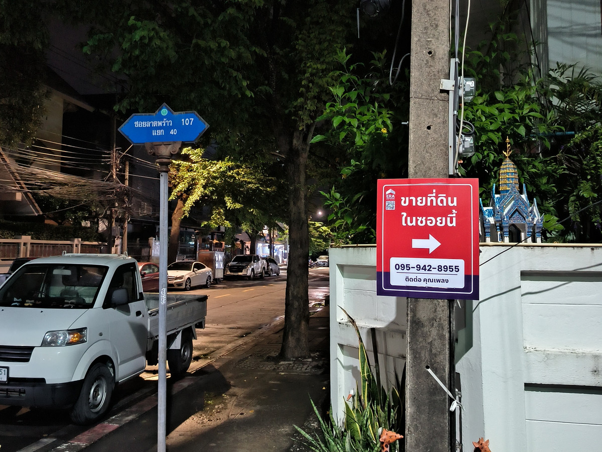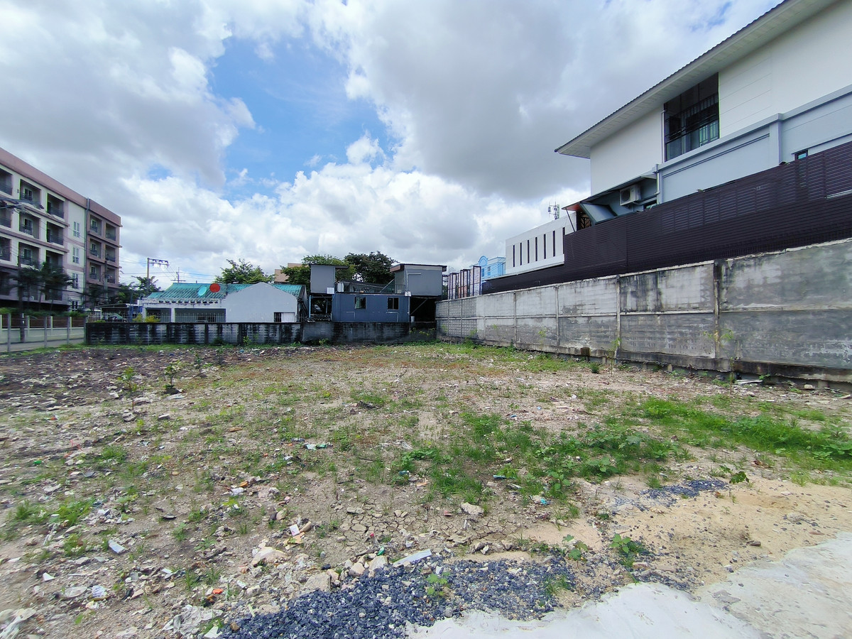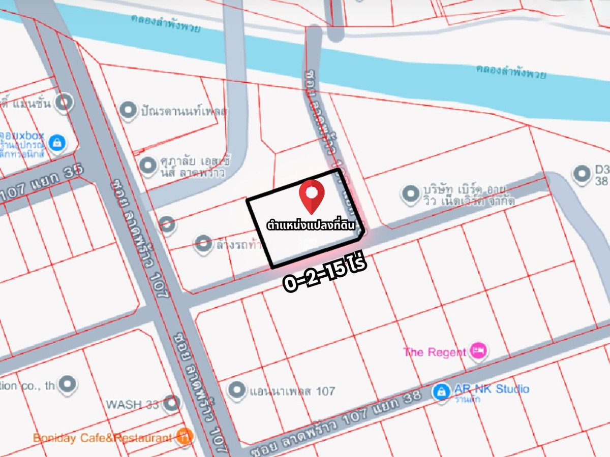 Corner plot of land for sale The best location at Ladprao 107 Filled and ready to build | Wide width | Close to the Yellow Line 📍 Location: Soi Lat Phrao 107, Intersection 40, Khlong Chan Subdistrict,
