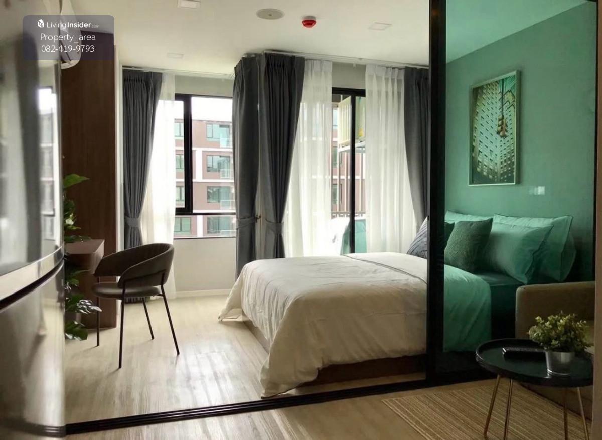 Project name: Atmoz Lat Phrao 71 Room size: 23 sq m Building: D Floor: 6 View: Swimming pool🏖️ Furniture & electrical appliances, bed , mattress , sofa , dressing table , air conditioner , TV , wa