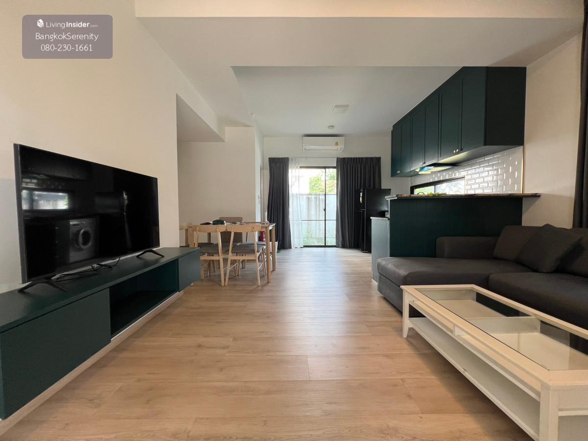 Townhouse for rent at Indy 5 Bangna Km.7 (BSL-02038) - 2 Bedrooms, 2.5 Bathrooms - Corner plot with a small garden - Fully furnished - For rent 40,000 baht/month 📞 Contact BangkokSerenity for Viewing