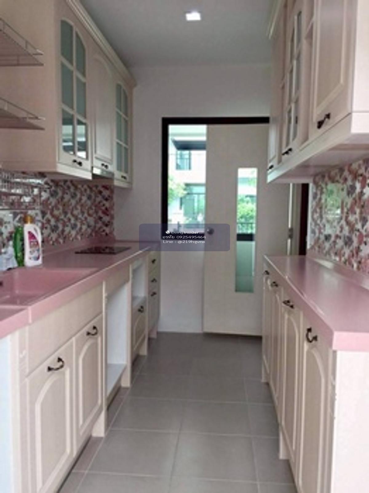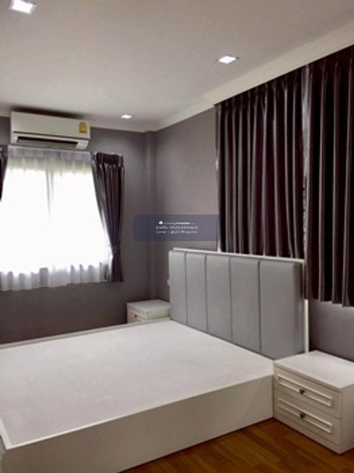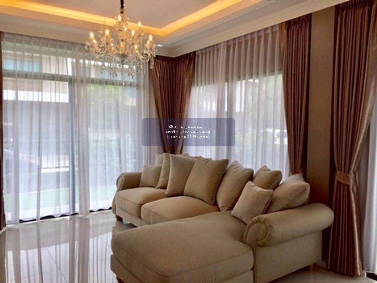 2-story detached house, Casa Ville Ramintra-Wongwaen 2, area 57 sq m., Kanchanaphisek Road, Bang Khen District, Bangkok, usable area 166 sq m. Inside there are 4 bedrooms, 3 bathrooms, living room, kitchen, 2 parking spaces, with 2 air conditioners (furniture includes sofa, dining table, refrigerator, chandaria, TV shelf, built-in wardrobe Built-in kitchen counter, wallpaper, curtains, washing area. Awnings all around, artificial grass and a garage) Beautiful house, good location, shady atmosphere, pleasant to live in, complete utilities. There are many routes to enter and exit. Suitable for buying for living. Or buy for investment Nearby places/highlights 1. Near Fashion Island Mall, Promenade Mall and Central East Ville 2. Near Synphaet Hospital. and Sathit Phatthana School 3. Near the Eastern Outer Ring Road. and Chalong Rat Expressway Facilities - Clubhouse, salt-water swimming pool, fitness, public park, Jogging Track, CCTV, Access Card Control system, CCTV and 24-hour security guard