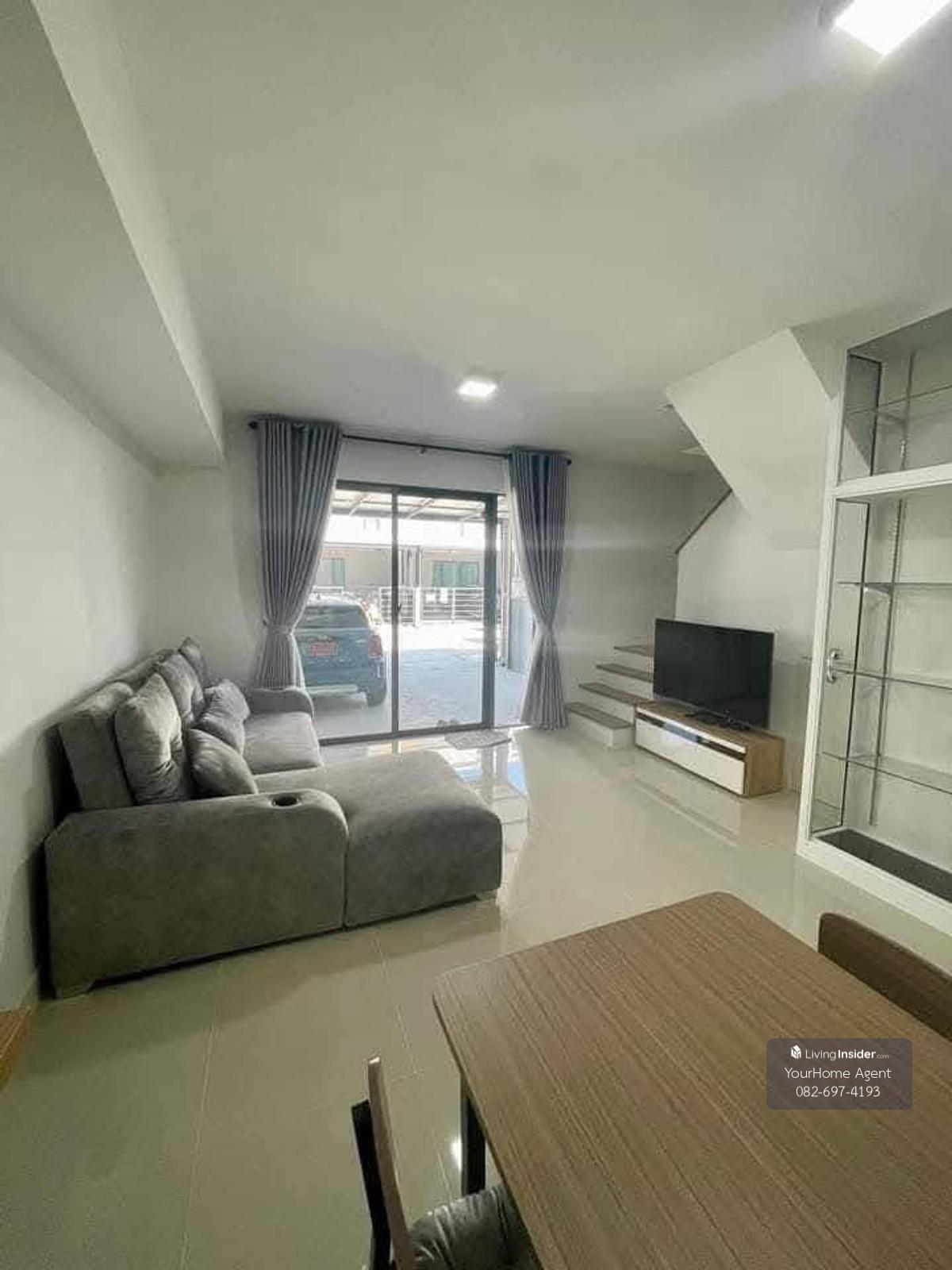 Beautiful house, fully furnished, ready to move in, near the expressway, convenient travel. 🛏 House details 2-story townhome 3 bedrooms, 2 bathrooms, 1 kitchen Usable area 120 sq m. Land 17 sq m. Parking for 2 cars Digital Door Lock Ready to move in 🛋 Furniture & Electrical appliances 6 foot bed, 1 set 5 foot bed, 1 set reclining sofa Wardrobe TV 55" Refrigerator washing machine Microwave Electric stove + exhaust hood 📍 Location Near the ring expressway Near Burapha Withi Expressway Near Mega Bangna / IKEA Convenient travel into the city 💰 Rental conditions Price 30,000 baht / month Minimum contract 1 year 2 months warranty + 1 month advance