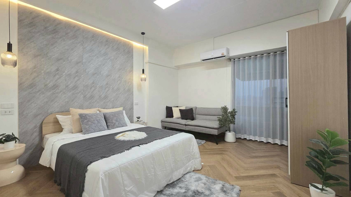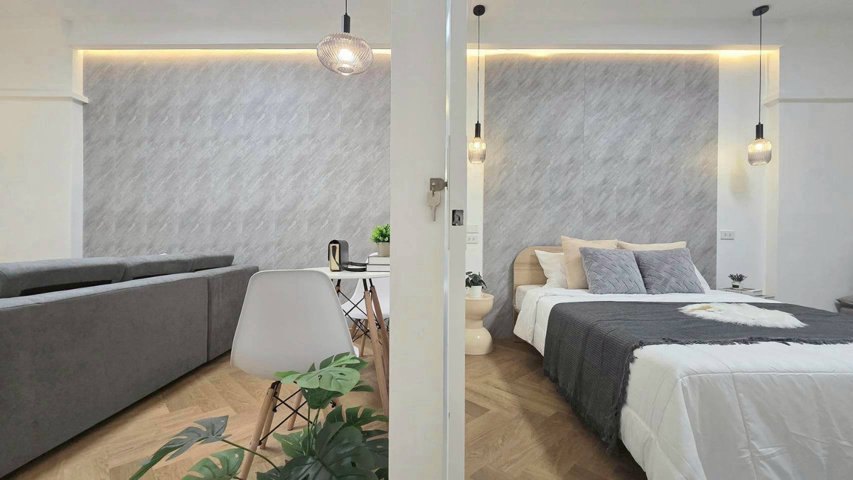 Room details ✓ Room size 41 sq m ✓ 1 bedroom ✓ 1 living room ✓ 1 bathroom Facilities -Parking -Garden -24 hour security system -CCTV -Key card entry/exit -Cheap common area 400 baht per month Outstand