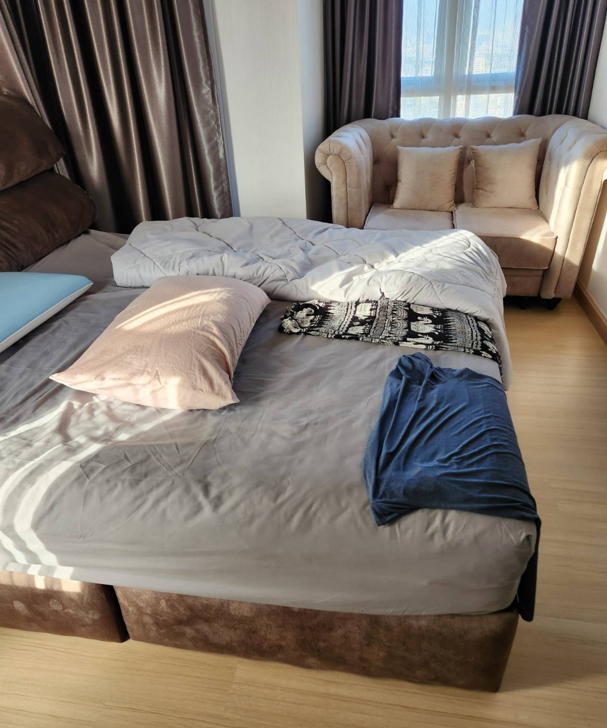 *English below* 🏙️ Condo for Rent at Supalai Veranda Ramkhamhaeng | High-Floor Corner Unit with Open View 📍 Address Huamark, Bangkapi, Bangkok ✨ Quiet detached corner unit with full privacy 🌿 Beautiful surrounding scenery with no blocked view 🏙️ Located on the 33rd floor (out of 34 floors) 📐 Unit details • 2 Bedrooms 🛌 • 2 Bathrooms 🚿 • Living room 🛋 • Kitchen 🍳 • Veranda 🛋 Furniture & appliances (fully furnished) • 72-inch TV 📺 • 3-seater sofa • 2-seater sofa in master bedroom • Dining table with 4 chairs • 2 King-size beds 🛏 • 3 fixed built-in closets • Large refrigerator • Large washing machine • 2 electric stoves with smoke outlet • Microwave • Water heater 💎 Highlights • Detached corner unit – very quiet • No noise issues, comfortable living • Open view with no obstruction 🏢 Facilities • Gym 💪 • 2 Swimming pools 🏊‍♂️ • Basketball court 🏀 • Air-conditioned rooftop study & relaxation area ❄️ • Plenty of available parking spaces 🚗 • Excellent security system 🔒 🚗 Accessibility • Easy access from both Ramkhamhaeng Road and Huamark Road For only 27,000 THB/month 📞 Contact / Viewing appointment TEL: Contact number LINE: https://lin.ee/hoIgRzM LINE ID: @533ryoop WHATSAPP: Contact number