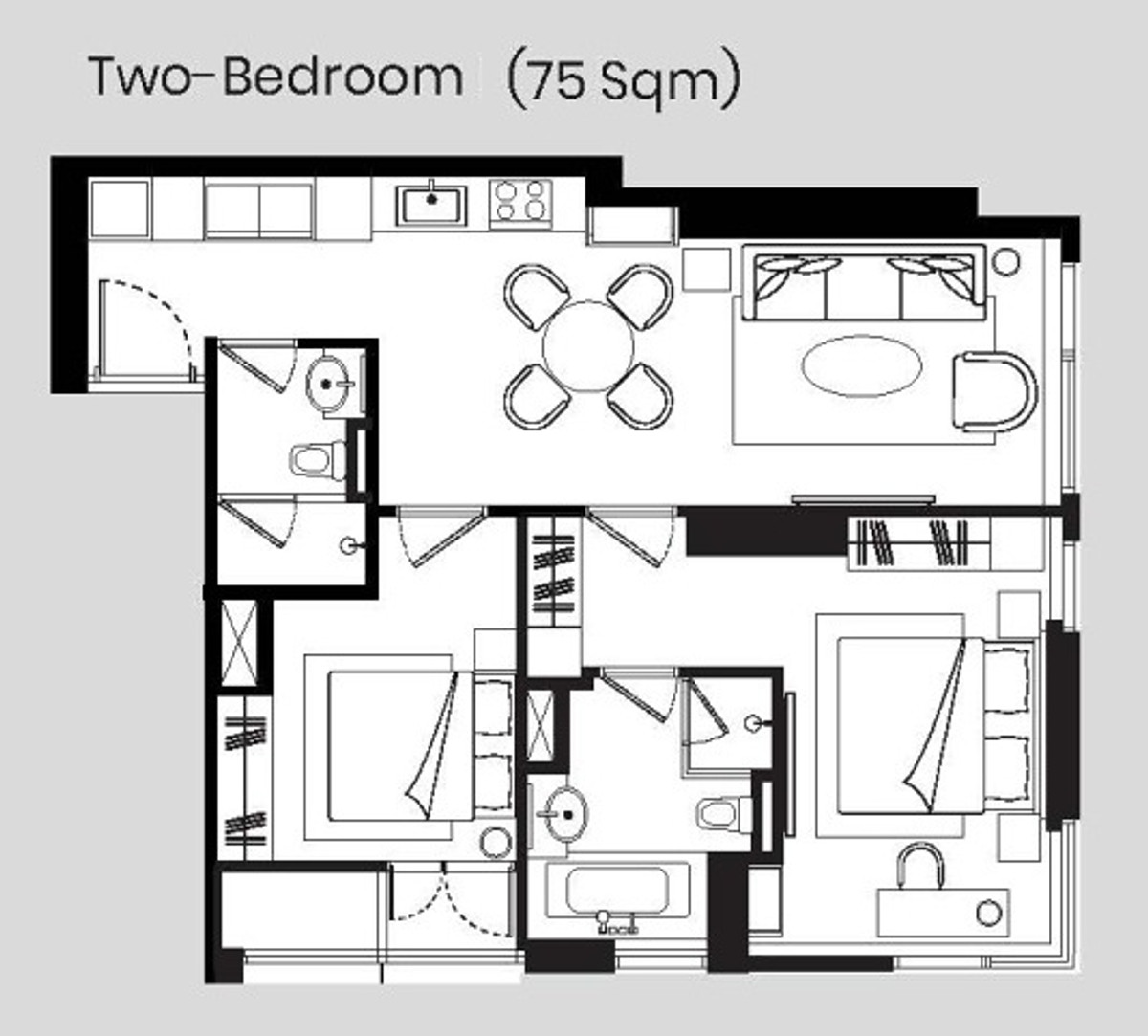Brand-new serviced residence under the Ascott brands. Modern design and full facilities. (inclusive of services benefit) Size 75 sqm. 2 bedrooms, 2 bathrooms Living Area, Dining Area, Kitchen Rent: TH