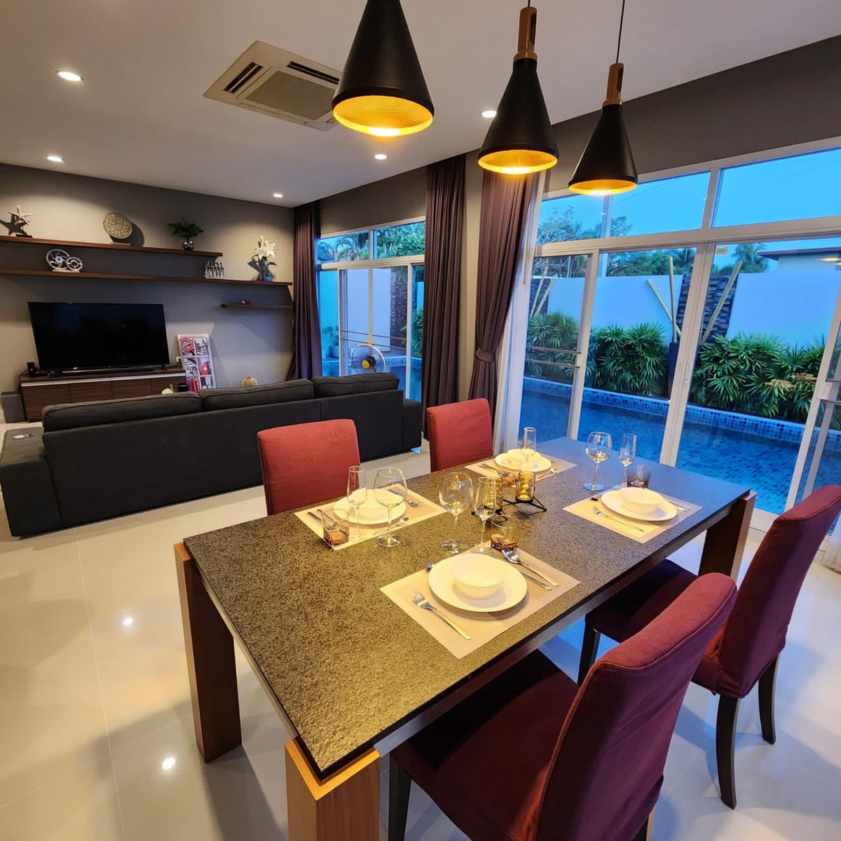 Private single house with a private swimming pool in a peaceful setting. Fully furnished with a functional layout,Ready to move in. - 3 Bedrooms 2 Bathrooms - Living area 190 Sq.m - Land size 532 Sq.m