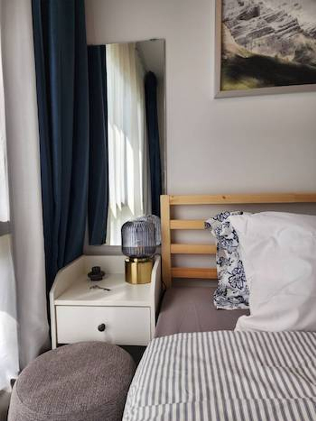 Hi Chaengwattana 19 Condo (Building A) No. 23/44, Room A407, Village No. 4, Khlong Kluea Subdistrict. Pak Kret District Nonthaburi Province 11120 New condo for rent, Hi Chaengwattana 19, size 30 sq m. (Building A, 4th floor), corner room, wider than other rooms and has a living room window. Makes the room more airy and open. The bedroom of the world view corner room in front of the swimming pool. large window With all new furniture and appliances. Located in a building with a swimming pool, fitness center, parking, key card system door, CCTV, guard 24 hours a day, 1 bedroom, 1 bathroom, kitchen and drying balcony Rent 8,000 baht, deposit 2 months, rent 1 month in advance, contract 1 year Contact Contact number Line ID : pojline e-mail : Contact email Furniture and interior amenities - Living room furniture, 6-foot bed, mattress, pillows, blankets, wardrobe, dressing table, lamp with built-in kitchen counter - 2 inverter air conditioners, 11,000 BTU, LCD 4K, 50 inch TV, 2-story Sharp refrigerator, Electorlux water heater, 2 microwave systems, washing machine - Bedroom, curtains 2 floors, UV protection and roller blinds in the living room Common facilities - Swimming pool, salt system - Fitness - CCTV security system 24 hrs. - Key Card door - Fire protection system 8-storey condo, 2 buildings, 124 parking spaces, location at the Pink Line MRT station. There is Central Chaengwattana. Quiet and pleasant with all amenities including a swimming pool, fitness center, co-working space, and shuttle service. BTS station Nearby places Central Chaengwattana, Makro Chaengwattana, Lotus Chaengwattana, Major Cineplex Chaengwattana, The Avenue Chaengwattana, Big C Chaengwattana Muang Thong Thani, Panyapiwat Institute of Management, Sukhothai Thammathirat Open University, Bangkok International School World Medical Hospital, Mongkutwattana Hospital, Pak Kret Hospital, Vibharam Pak Kret Hospital, Krungthai Hospital 80th Anniversary Government Complex (4 stations), Machinery and Communications Office, Department of Highways, Institute of Forensic Science, Defense Technology Institute, Ministry of Defense, Nonthaburi Provincial Land Office Pak Kret Branch, Pak Kret Municipal Office