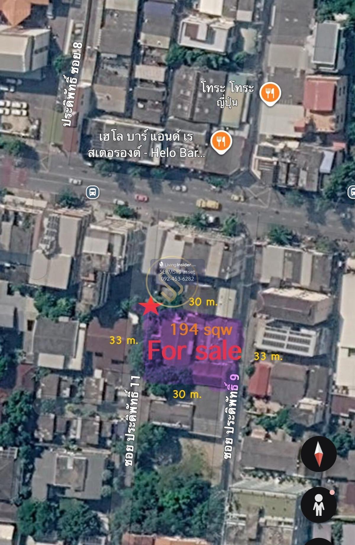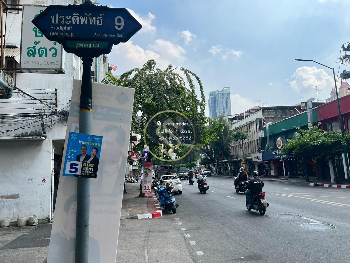 Urgent sale!! Beautiful plot of land in Pradipat location, next to the road on 2 sides Land size 194 square wah Total usable area approximately 750 square meters Width next to the road 33 meters Depth 30 meters Within the land there are buildings, 3 buildings (good condition that can be lived in immediately) as follows: ➡️ 1 half-cement, half-timber house (teak) - 4 3 bedrooms, bathrooms - 1 living room - 1 Thai kitchen - 1 Western kitchen - 1 dining room ➡️1 2-story cement house - 2 bedrooms, 3 bathrooms - 1 living room - 1 multi-purpose room - 1 Western kitchen - 1 dining room ➡️1-storey wooden building - 1 bedroom - 1 bathroom and 1 toilet - 1 living room - 1 multi-purpose room - 4 maids rooms with built-in maids bathroom Parking: - 6 parking spaces - 3 indoor parking spaces - 3 open courtyards Vehicle Very good location: - The land is at the beginning of Soi Pradipat, only 15 meters - Can enter and exit both Pradiphat 9 and Pradiphat 11 - Next to the road, 2 alleys (dead alley, not crowded), easy to enter and exit - In front of the alley, there are 7/11, many restaurants, cafes Transportation : - Only 15 meters from the main road. meters - Expressway to Chaengwattana 1 km. - Si Rat Expressway into the city 1.8 km. - BTS Saphan Khwai Station 1.3 km. - BTS Ari Station 2 km. - Or.T.K. Market 2 km. - Chatuchat Market 2.2 km. - Bangkok Apiwat Railway Station 2.3 Km. - Parliament House, Tha Khiaw Khai Ka 3 Km. - Chulamanee Temple - Macro Near shopping area. : La Villa Aree, Central Ladprao, Union Mall, A.T.K., Chatuchak, the Season Surrounded by hospitals. : Phayathai Hospital, Vichaiyut Hospital, Wimut Hospital, Phayathai 2 Hospital, Ramathibodi Hospital near school : Samsen School, Amnuay Silpa School, Kindergarten School BEYC, Kornkaew Kindergarten School, St. International School, Andrews Dusit, Horwang School, Chitlada School ➡️This plot of land is very suitable for : - those who want There is a house in the middle of the city. that has an area - those who want to renovate their home open a restaurant Doing business Open an office - Investors build houses for sale, townhomes, townhouses. This plot is very suitable - Investors build residential apartments Selling price only 52,000,000 baht (270,000 baht per square wa) If interested, ask for more details. Or make an appointment to visit Contact: Khun Joy (Sermsiri) Contact number ID Line : joy1555 Ready to provide advice on all types of real estate, including consignment for sale, consignment for rent / looking to buy, looking to rent. Free service, no cost, marketing, screening for customers. With every media channel