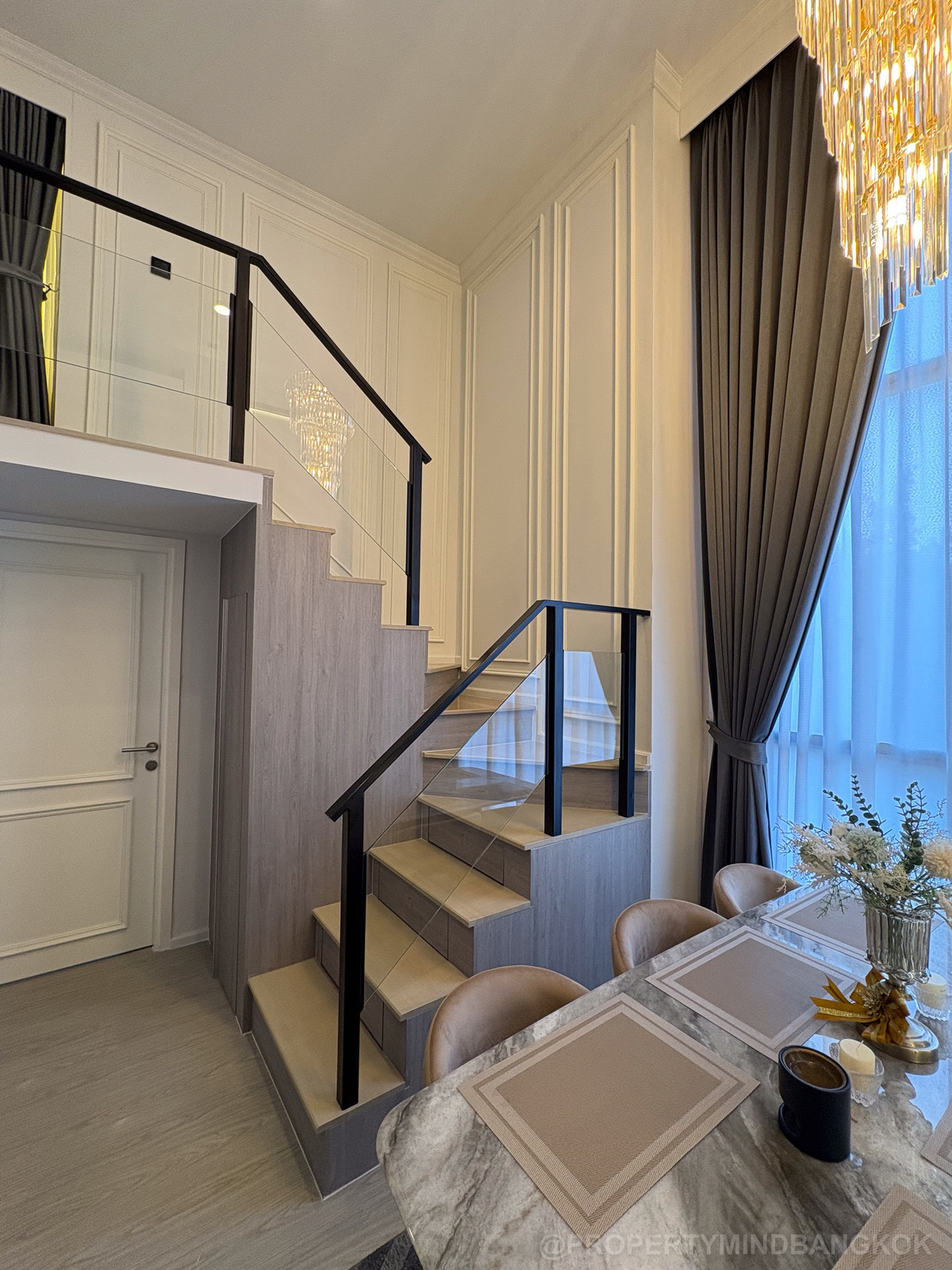 English below, 中文下面 🔥 Luxury condo Loft for rent only 29,500 baht!🔥 【Origin Plug & Play Ramkhamhaeng Triple Station 】 ✨ 45 sq m. | 4th floor | Ceiling height 4.2 meters | Corner room 🛏️ 1 bedroom + 1