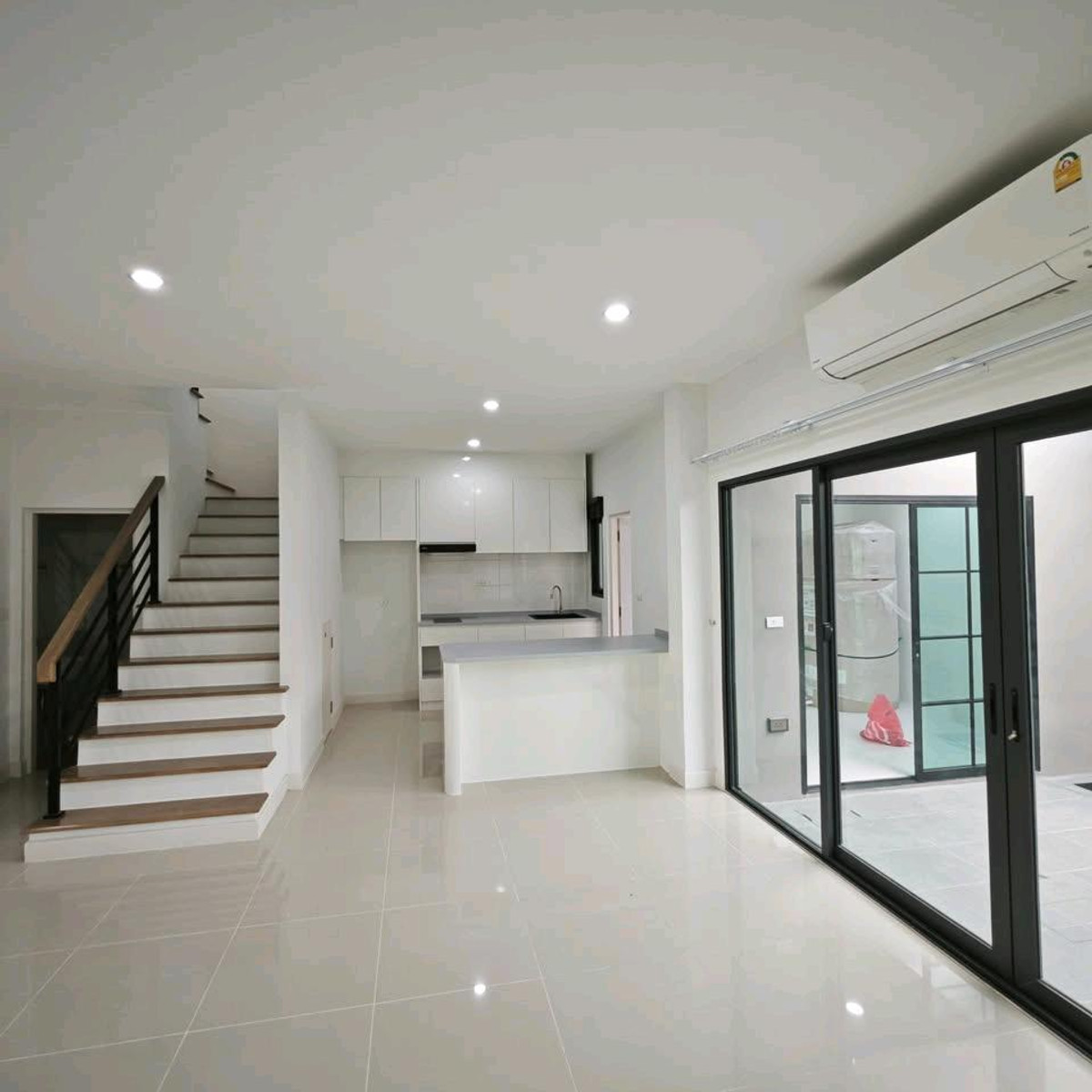 For rent: Baan Klang Muang The Edition Pinklao-Borom. 2 https://maps.app.goo.gl/zEZkwqZxsDRqt54x9 - 2-story townhome - 4 bedrooms, 3 bathrooms - near the expressway in front of the project, near the security guard, swimming pool and exercise room - width 8 meters, parking for 2-3 cars - land area 36.9 sq m. - Usable area 200 sq m. + addition of a multi-purpose room. The back yard is approximately 20 sq m. - Vinyl awning installed in front and back, full area - There is an air conditioner, curtain, water heater - Kitchen with electric stove, exhaust hood, sink Rent 36,000 baht / month If interested, contact. Contact number679 line id Pooapipoo
