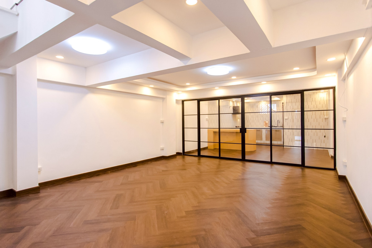 CS034 SNOW WHITE ☃️ 🏡 3-Story Townhome House Number 384/3, Soi Ruam Namjai, Yaek 3, Pradit Manutham 10, Soi Ruam Namjai 3 Absolutely stunning! The kitchen is incredibly luxurious, with SPC flooring th