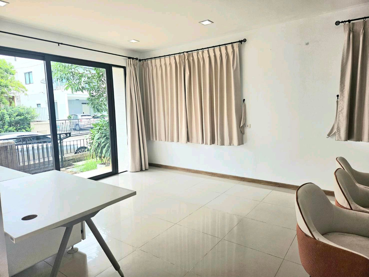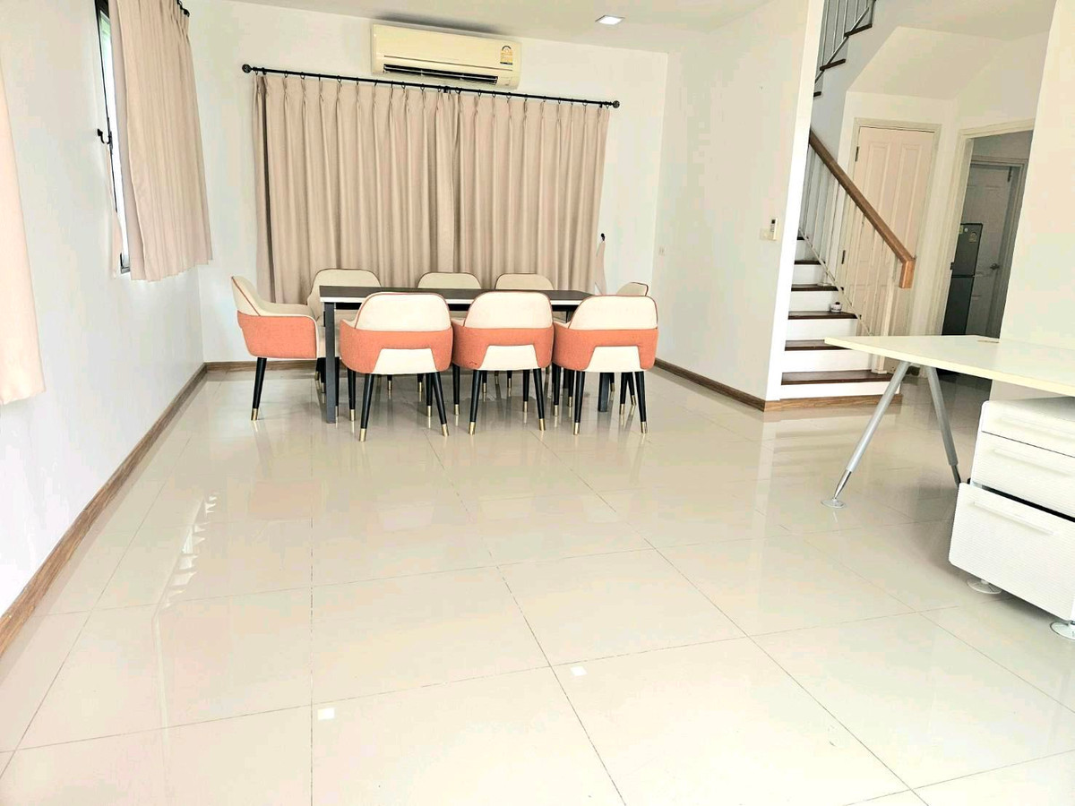 Area 50 sq m. Usable area 220 sq m. 5 bedrooms, 4 bathrooms Parking for 4 cars in the house Air conditioning Furniture, refrigerator, bed, clothes cabinet, kitchen Rent 45,000/baht per month Road in the project 6 meters, fitness center, swimming pool, security guard, juristic person, near school, Big C, Or Ngoen Market, Saphan Mai Market Makro Suki Tee Noi, BTS station, expressway entrance. There is a new road has been constructed crossing from Thep Rak Road to Vibhavadi Road or go to Don Mueang Airport to take the tollway Convenient travel