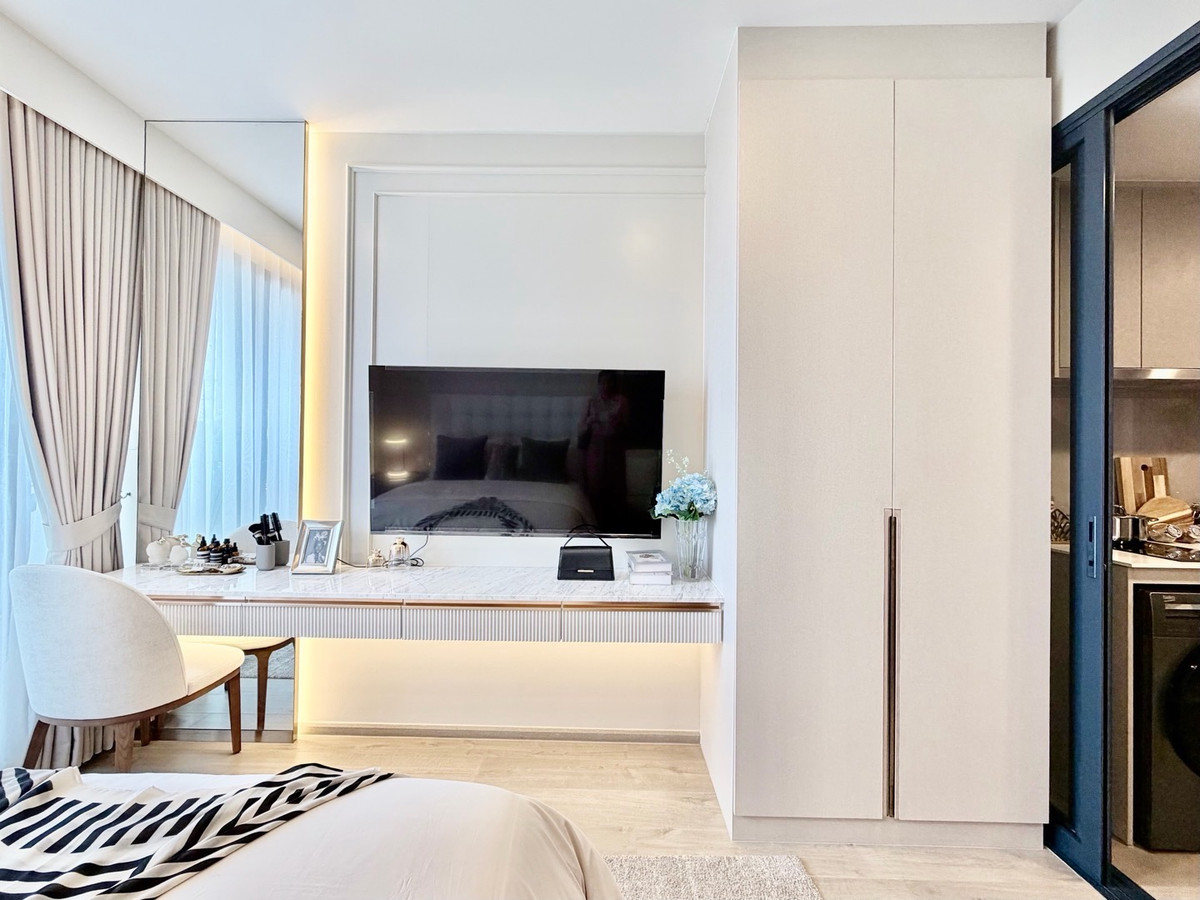 Condo near MRT Lumpini and Khlong Toei, walk only a few meters to One Bangkok The Crown Residences Condominium next to Rama 4 Road : between MRT Lumpini and MRT Khlong Toei : see gardens on 2 sides, Lumpini Park 360 rai and Benjakiti Park 450 rai : behind the project. See the curve of the Bang Krachao River : 400 meters, walk to the One Bangkok project Project details : 32-story condo : 178 units : Total parking 68% Automatic Parking & On Ground Room details : 1 Bedroom 25.79 sq.m. : 5th floor : West/South (behind the project) : Price 7,246,990 baht : Promotional price 6,105,000 baht (236,720 baht/sq m) : Empty room with kitchen set and air conditioner Special promotion, Exclusive type. Call Contact number or Line : @propthai