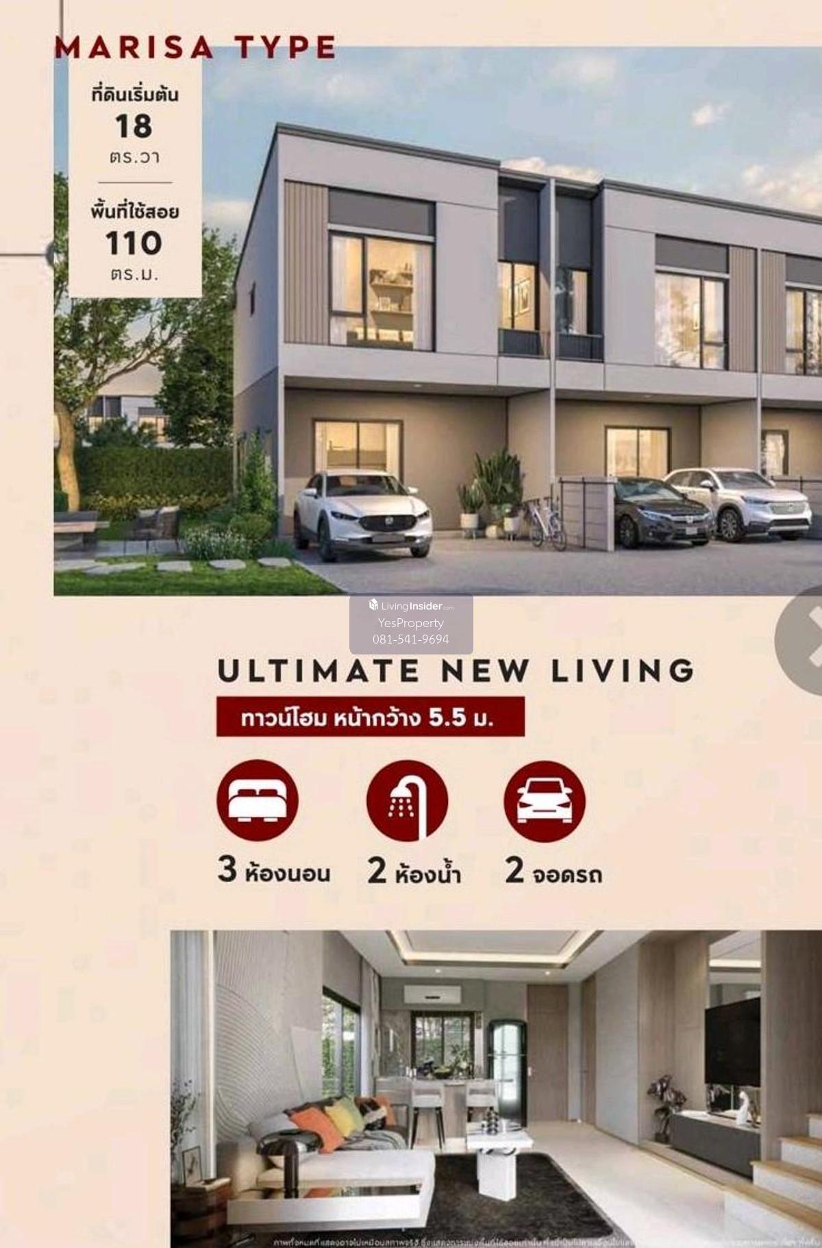 Townhome for rent, 3 bedrooms, 2 bathrooms, 2 parking spaces, Pleno, Pleno Sukhumvit, Bangna 3.