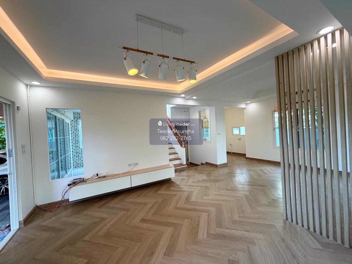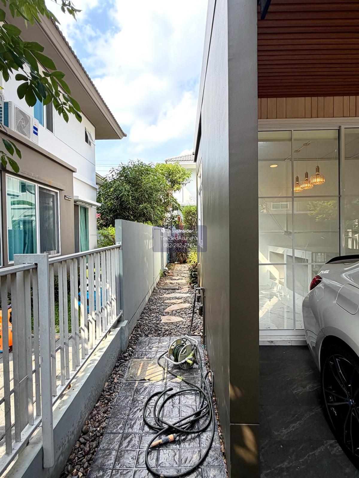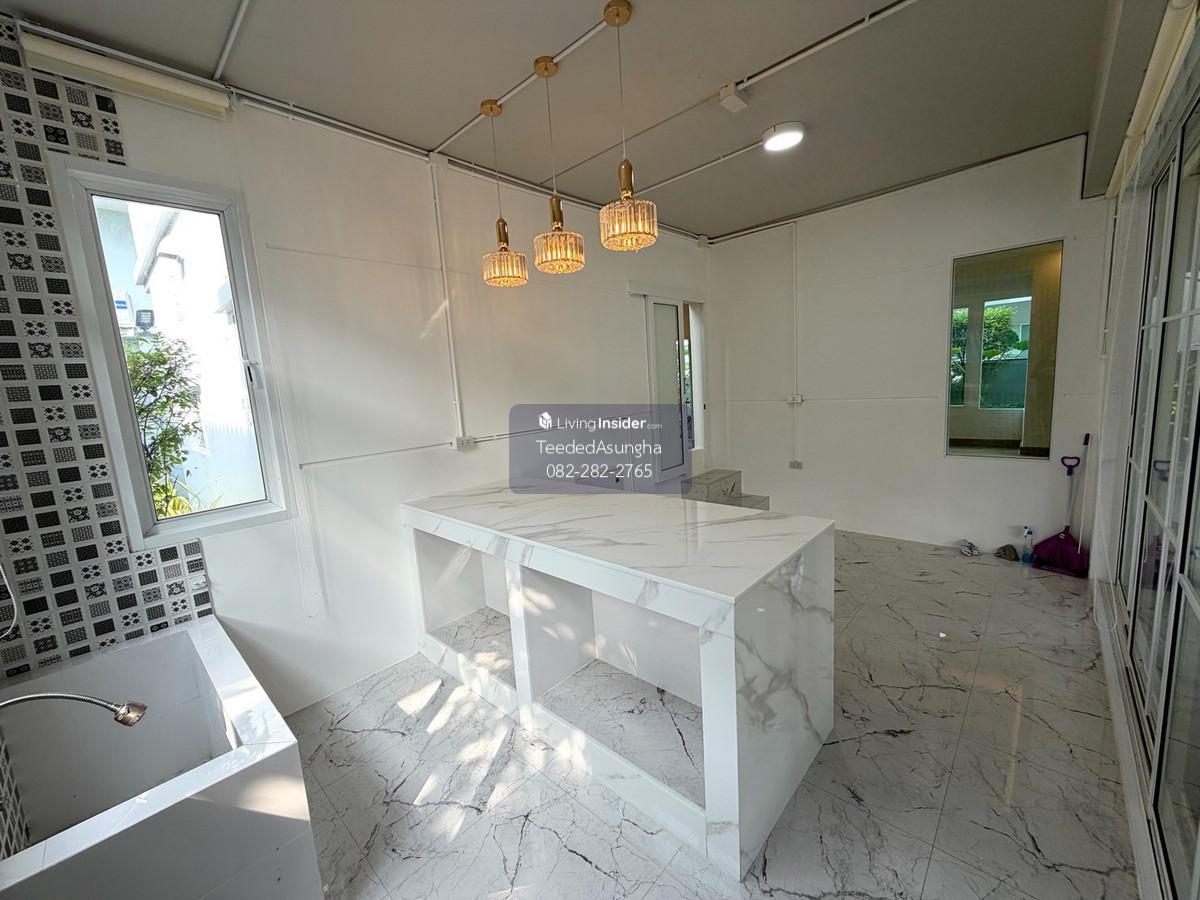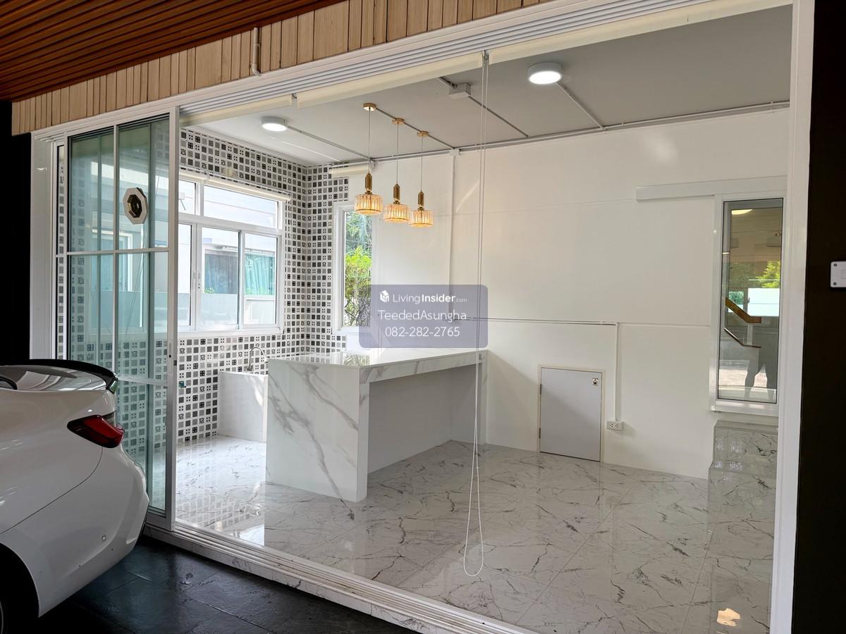 50 sq m, 3 bedrooms, 3 bathrooms, 2-story detached house, Prueklada, Wongwaen, Hathairat 3 bedrooms, 3 bathrooms + 1 multi-purpose room. (addition) 2 Parking addition/installation Additional amenities are as follows 1. Automatic watering system around the house. Beautiful trees dont need to be watered yourself 2. 4 external CCTV cameras around the house 3. Built-in kitchen/food preparation room + stone top with gas stove, hood, exhaust hood 4. automatic gate Can order work through the app 5. Digital Door Lock 6. Flooring with spc rubber tiles, wood pattern, both upstairs and downstairs 7. Add a bathtub to the master bedroom 8. Garage roof and the roof of the front of the house Decorative lath ceiling 9. Add a multi-purpose room with sliding glass to open and close. and run the water system to be able to open a small cafe 10. Raise the concrete floor in front of the house and install decorative tiles 11. Garden every month Beautiful garden, not overgrown, shady, big trees with good steel supports providing shade all day 12. Storage room separated from the house Can support the weight by installing 6 piles 13. Run the electrical system for charging electric cars 14. air conditioner Ground floor and master bedroom 15. Wire screens throughout the house Cat nail protection type, pet friendly 16. Furniture such as a chest of drawers in front of the TV, a display cabinet, a dining table 17. Install a glass cabinet with lighting system. Ground floor 18. Adding to the project, adding a downlight system. ground floor and upper floor and ceiling holes in the living room  19. Roof, translucent acrylic sheet SHINKOLITE, cuts light, sun protection, garden next to the house where you can sit and sip tea *** Transfer fee 50:50, income tax and stamp duty issued by the seller project owner Land and House Number of houses 452 plots Facilities – Swimming pool (separate childrens pool and adult pool) – Fitness room – Relaxation garden – Security system 24 hrs. Please feel free to contact us Khun Saowaluk o Contact number65 (Phone number T e l . Zero eight two two eight two two seven six five) Add Line: @saowaluk.an (insert @ in front) Website: www.livinginsider.com/public_profile/1/CIbbIj.html Page : www.facebook.com/teededasungha **Proceed with loan application. Take care throughout the purchase **Accepting sales, rentals, condos, houses, land and all types of real estate Location: Hathairat Road Sam Wa West Subdistrict Khlong Sam Wak District, Bangkok Size: 50 sq m, usable area approximately 178 sq m. Price: 5,489,999 baht