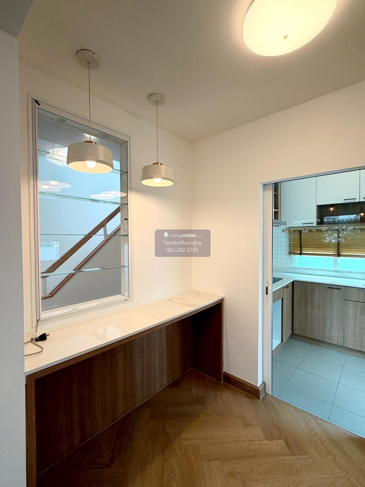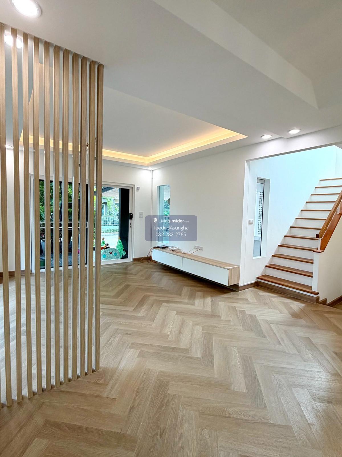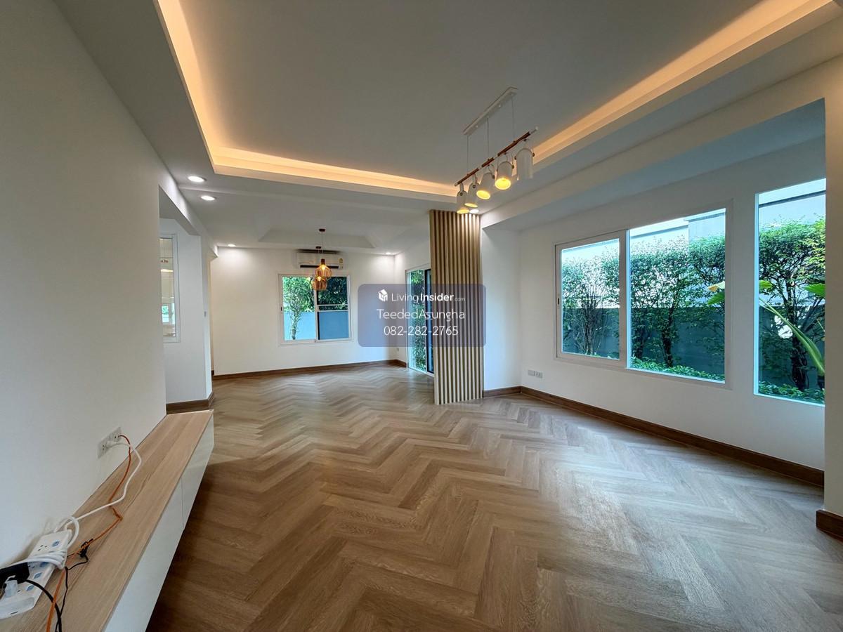 50 sq m, 3 bedrooms, 3 bathrooms, 2-story detached house, Prueklada, Wongwaen, Hathairat 3 bedrooms, 3 bathrooms + 1 multi-purpose room. (addition) 2 Parking addition/installation Additional amenities are as follows 1. Automatic watering system around the house. Beautiful trees dont need to be watered yourself 2. 4 external CCTV cameras around the house 3. Built-in kitchen/food preparation room + stone top with gas stove, hood, exhaust hood 4. automatic gate Can order work through the app 5. Digital Door Lock 6. Flooring with spc rubber tiles, wood pattern, both upstairs and downstairs 7. Add a bathtub to the master bedroom 8. Garage roof and the roof of the front of the house Decorative lath ceiling 9. Add a multi-purpose room with sliding glass to open and close. and run the water system to be able to open a small cafe 10. Raise the concrete floor in front of the house and install decorative tiles 11. Garden every month Beautiful garden, not overgrown, shady, big trees with good steel supports providing shade all day 12. Storage room separated from the house Can support the weight by installing 6 piles 13. Run the electrical system for charging electric cars 14. air conditioner Ground floor and master bedroom 15. Wire screens throughout the house Cat nail protection type, pet friendly 16. Furniture such as a chest of drawers in front of the TV, a display cabinet, a dining table 17. Install a glass cabinet with lighting system. Ground floor 18. Adding to the project, adding a downlight system. ground floor and upper floor and ceiling holes in the living room  19. Roof, translucent acrylic sheet SHINKOLITE, cuts light, sun protection, garden next to the house where you can sit and sip tea *** Transfer fee 50:50, income tax and stamp duty issued by the seller project owner Land and House Number of houses 452 plots Facilities – Swimming pool (separate childrens pool and adult pool) – Fitness room – Relaxation garden – Security system 24 hrs. Please feel free to contact us Khun Saowaluk o Contact number65 (Phone number T e l . Zero eight two two eight two two seven six five) Add Line: @saowaluk.an (insert @ in front) Website: www.livinginsider.com/public_profile/1/CIbbIj.html Page : www.facebook.com/teededasungha **Proceed with loan application. Take care throughout the purchase **Accepting sales, rentals, condos, houses, land and all types of real estate Location: Hathairat Road Sam Wa West Subdistrict Khlong Sam Wak District, Bangkok Size: 50 sq m, usable area approximately 178 sq m. Price: 5,489,999 baht