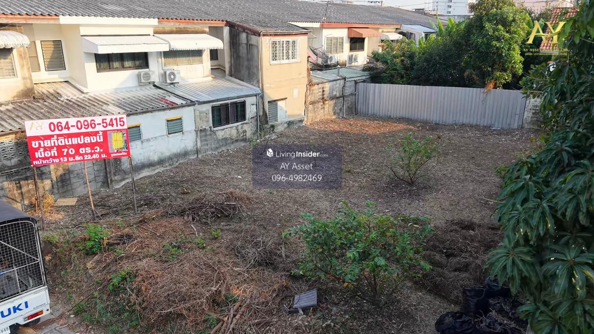 Land for sale in Chokchai 4, Soi 24, beautiful plot, already filled 🔥✅ - Land area 70 square meters - Width 13 m., Depth 22.40 m. - Road in front of the plot is 6 meters wide - Facing north - Near Pao