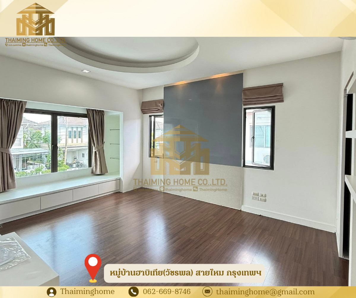 Sale/rental of Habitia Village (Watcharaphon) Sai Mai BANGKOK [TH5-340226] ✅ Details - Area size 79 square. - Four bedrooms. I three bedrooms. - 1 living room with furniture (no notification at all) - One kitchen, one top back porch. - Four or five cars parked. 🚇 Nearby Locations - Don Mueang Airport - Plearnary Mall - Big C Food Place สายไหม - Central Ramindra - Makro Theprak - Sarasas Witaed Saimai School And many more. - Bhumibol Adulyadej Hospital - Near the point of getting on and off Chalong Rat Expressway (Ramindra-Acharong) ☑️ Purchase/Rental Conditions - a one-year minimum contract - Two months' deposit, one month's advance. - The rent is 35,000 baht per month. - Sold for 8.5 million baht [half transfer fee] ----------------------------------------------------------------- บริษัท ไทยหมิง โฮม จำกัด Thaiming Home Co.,Ltd. 泰明房园 房产公司 ------------------------- Contact ติดต่อ : Contact number Contact : Contact number คุณหมิง(中文) Line ID: thaiminghome Line ID: @thaiminghome https://lin.ee/PkkHwYv Wechat : ThaimingHome E-mail : Contact email -----------------------------------------------