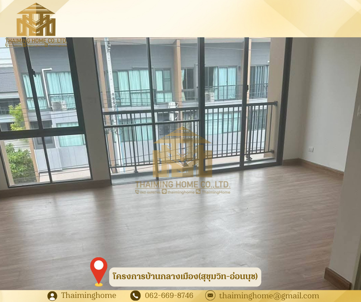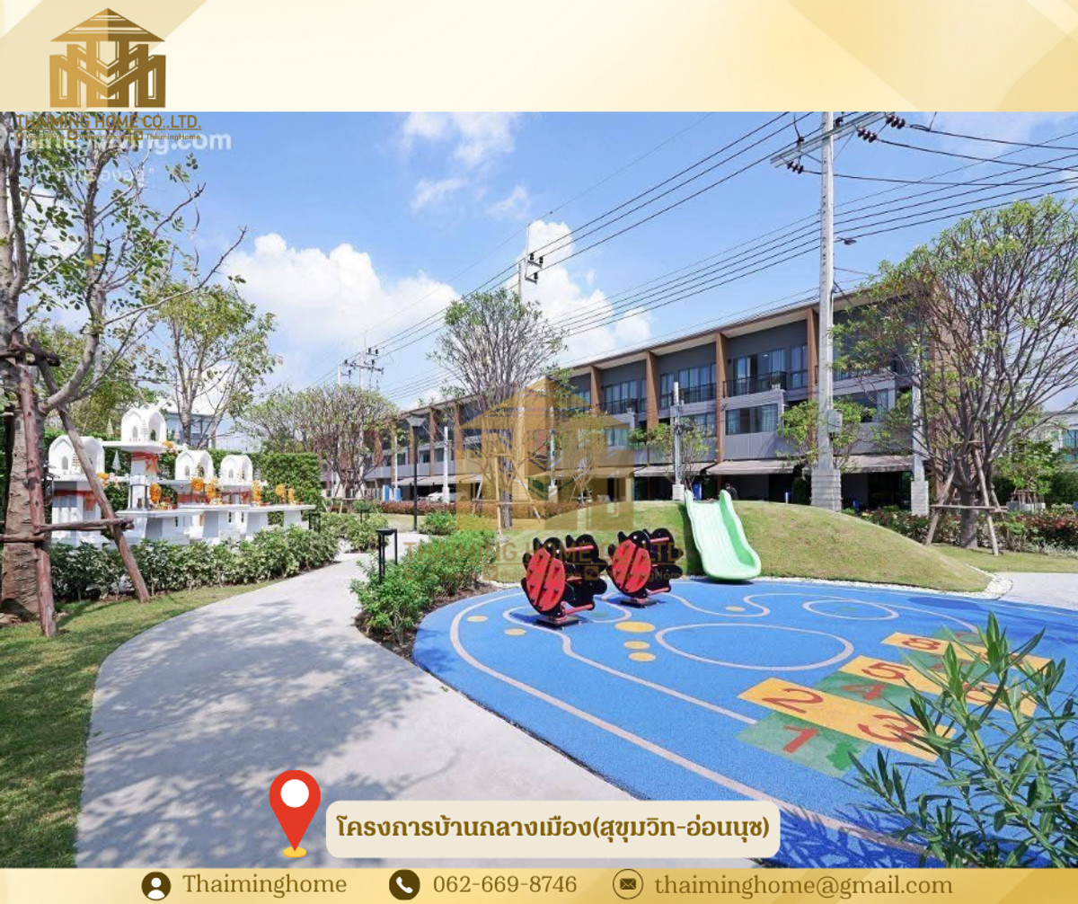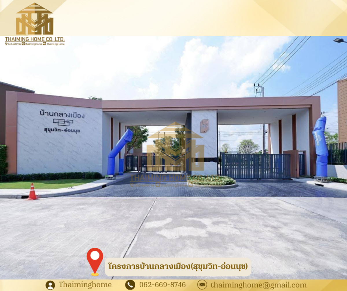 Selling 3-storey townhome, Baan Muang (Sukhumvit-On Nut) Project [TTT5-090226] ✅ Details - Area 17.9 square. - The usable area is 142 square meters. - Three bedrooms, three bathrooms. - Parking lot. Two cars. - The townhouse behind the rim has a side area. - make an office wide of space - There are children's and adult swimming pools, playgrounds, fitness clubs, and gardens. • Free of charge, 1 new air conditioner and a digital lock door • 🚇Nearby Locations - Suvarnabhumi Airport - Airpotling - Seacon Square Srinakarin - Samitivej Srinakarin Hospital and many others. - International schools - Near the Sri Ratchasima Expressway and Kanchanaphisek Ring Road, it allows easy access to and from the city. - 3 accesses and exits via On Nut Road, Pattanakarn Road and Srinakarin Road. ☑️Purchase/Rental Conditions - Sold for 6.5 million baht. ----------------------------------------------------------------- บริษัท ไทยหมิง โฮม จำกัด Thaiming Home Co.,Ltd. 泰明房园 房产公司 ------------------------- Contact ติดต่อ : Contact number Contact : Contact number คุณหมิง(中文) Line ID: thaiminghome Line ID: @thaiminghome https://lin.ee/PkkHwYv Wechat : ThaimingHome E-mail : Contact email -----------------------------------------------