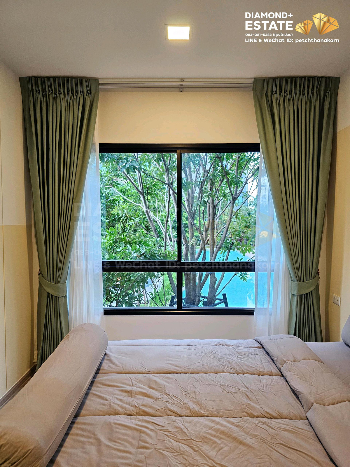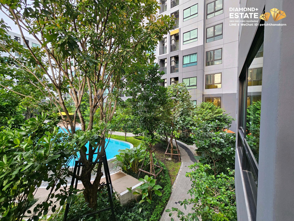 Vay Condo for rent, 2 bedrooms Convenient for people who like large rooms family and executive model 💎The room is decorated and ready to move in. Complete with electrical appliances, everything you need, room size 44.43 sq m., garden view, 2nd floor, north balcony room. It is private and is shaded by trees. 🔖Rent 18,000 baht per month Call/Line Contact number Diamond Estate