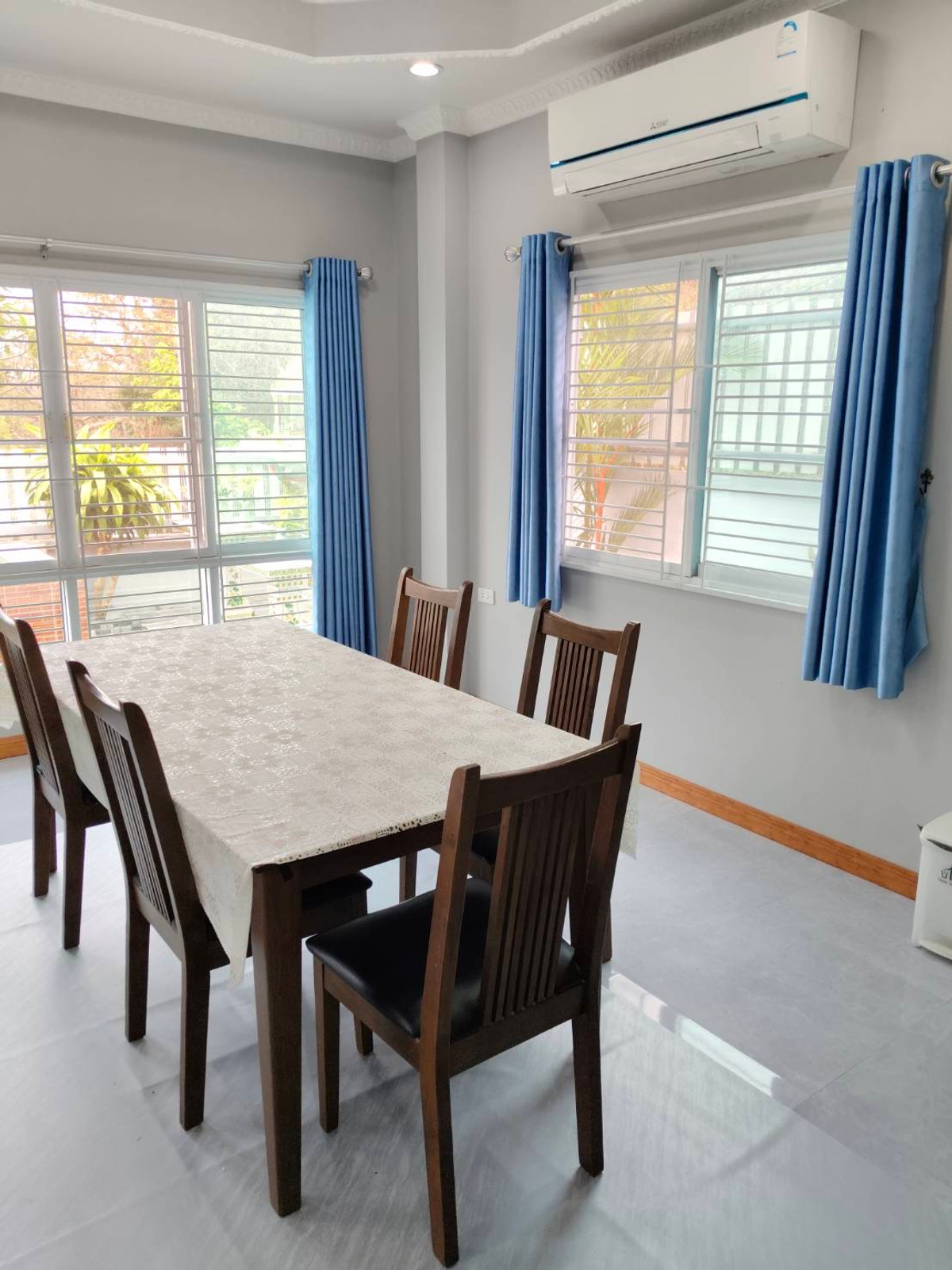 2-story detached house, Soi Khao Mon, Sattahip Area 86 sq m, 4 bedrooms, 3 bathrooms Living room, dining room, kitchen Parking for more than 5 cars, garden with trees. Mountain view, beautiful house,