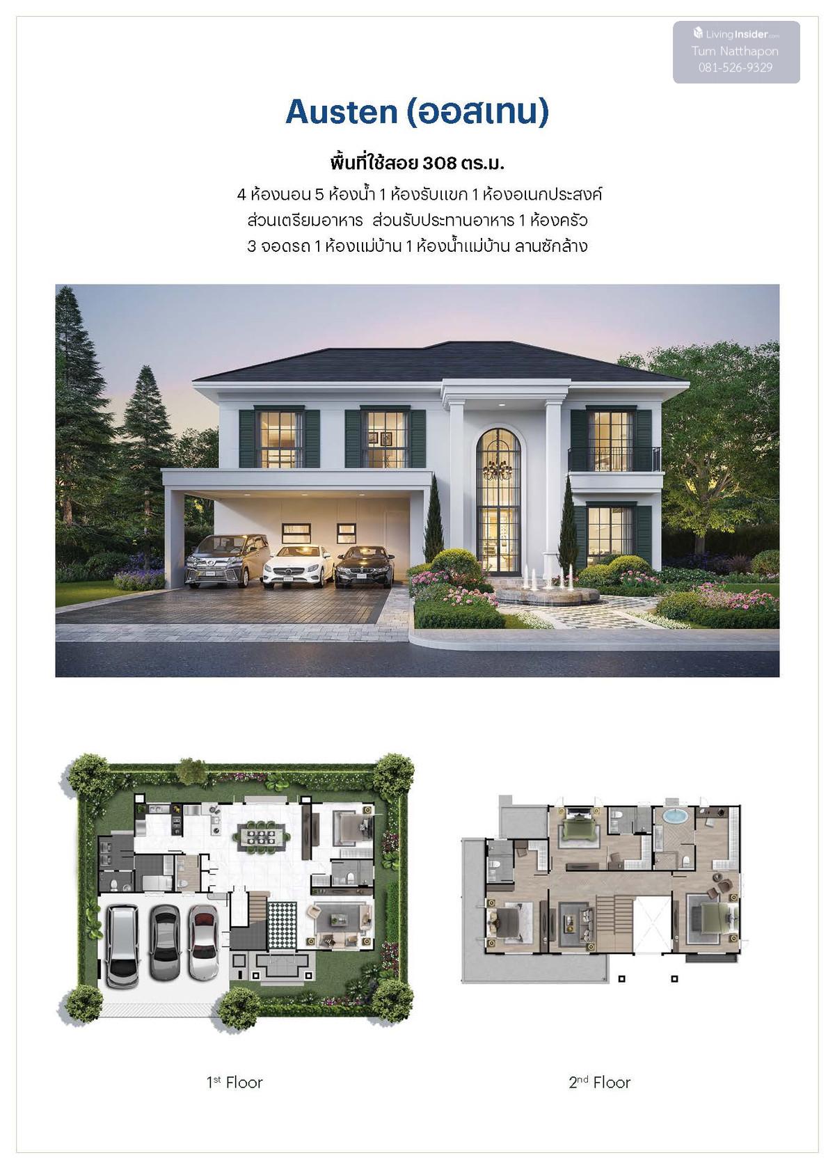 # Real picture of the house # New house, first hand, special price 24 million baht* Austen house style (Austen) Land area 88.60 sq.wa Usable area 308 sq.m. - 4 bedrooms, 5 bathrooms - 3 car parking spaces - Living room - Multipurpose room - Kitchen - Maids room Contact for inquiries/make an appointment to view the room Mobile number: Contact number (Tum) LINE click: https://line.me/ti/p/SsKQ7_n3J4 (ID: tottum) Whatsapp : Contact number Project location : https://maps.app.goo.gl/A4dQRYqrX3kRqMbU8