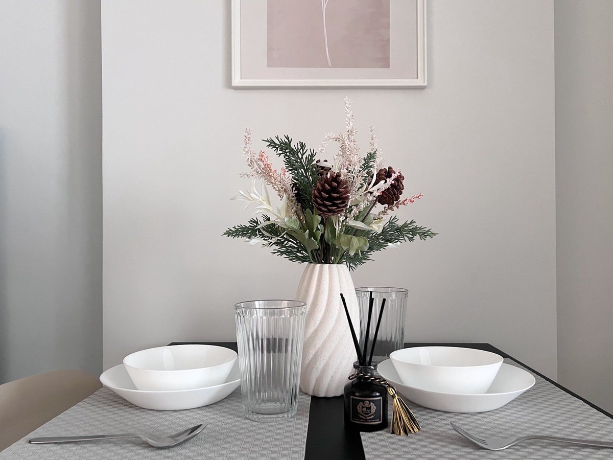 -Washing machine - Refrigerator - Wardrobe - Built-in dressing table - Bed + 5 foot mattress - Bedside shelf + lamp + decorative props - 2 pillows, 3 cushions - Bedspread + decorative props - Quilt -