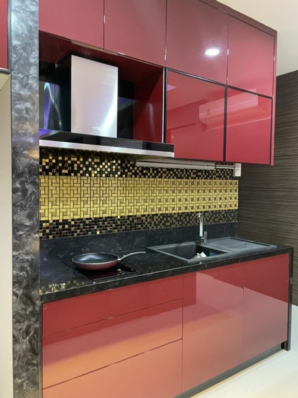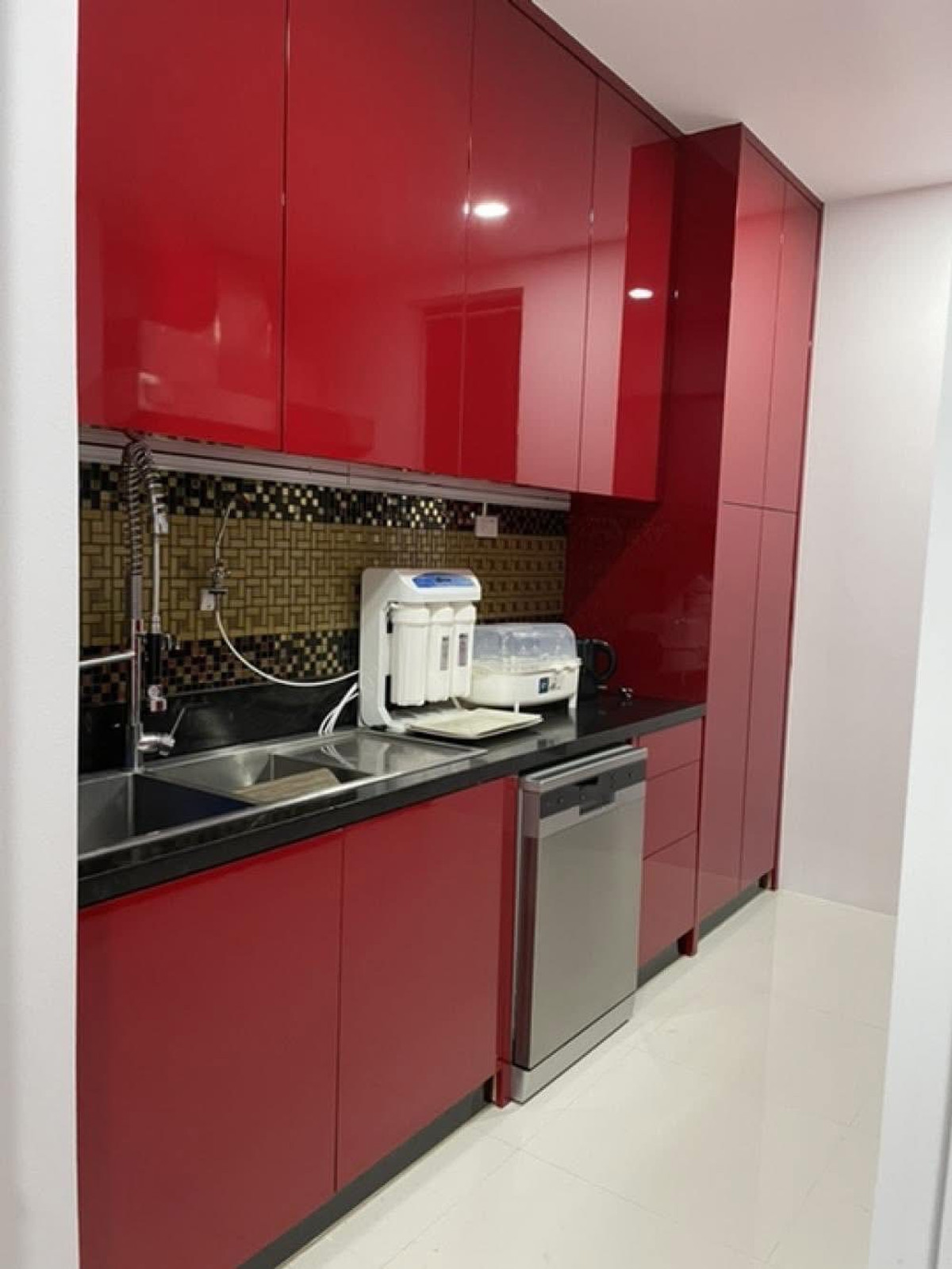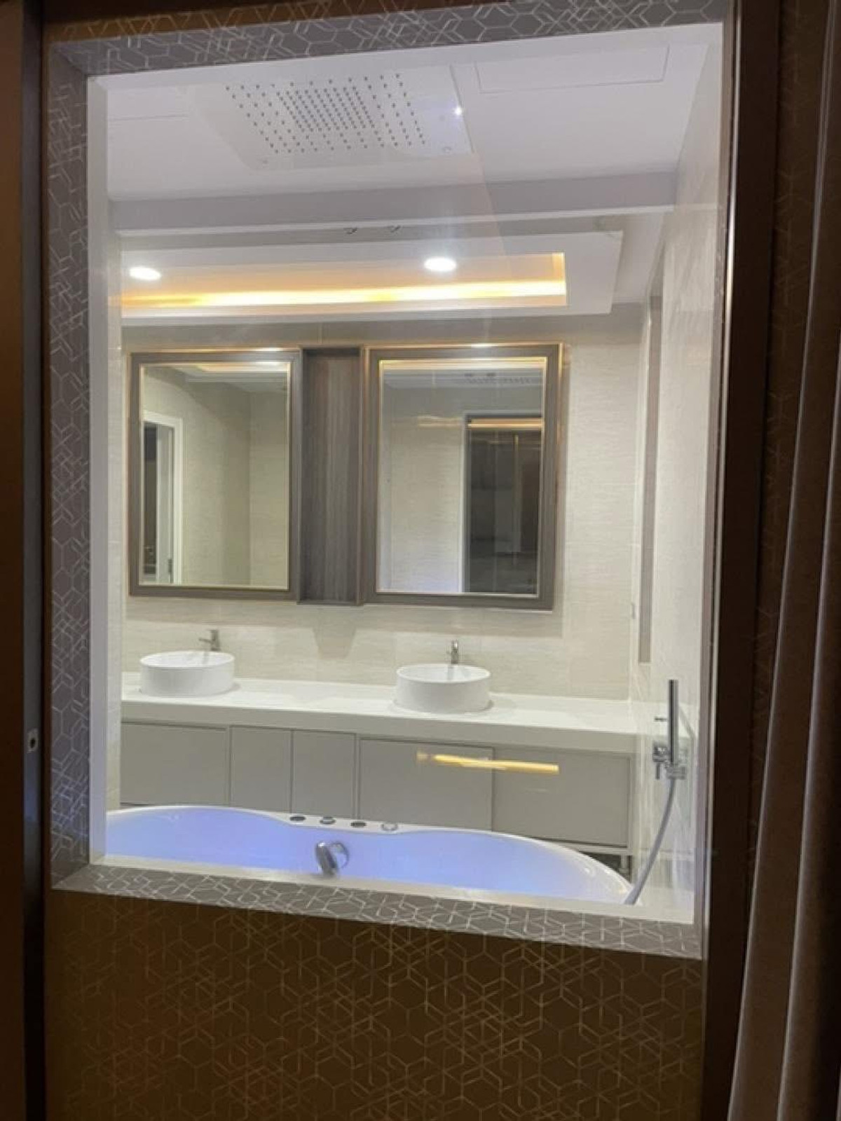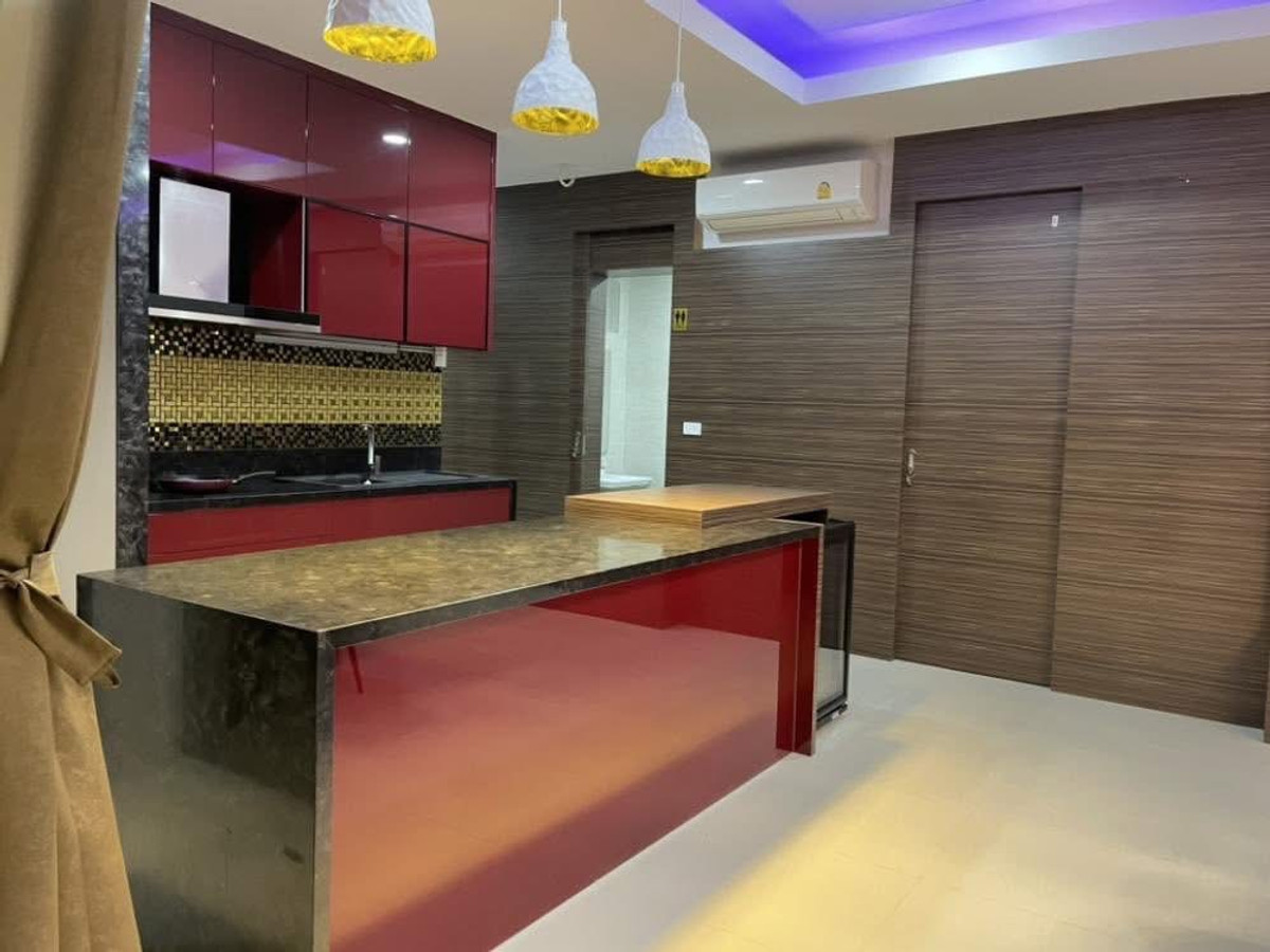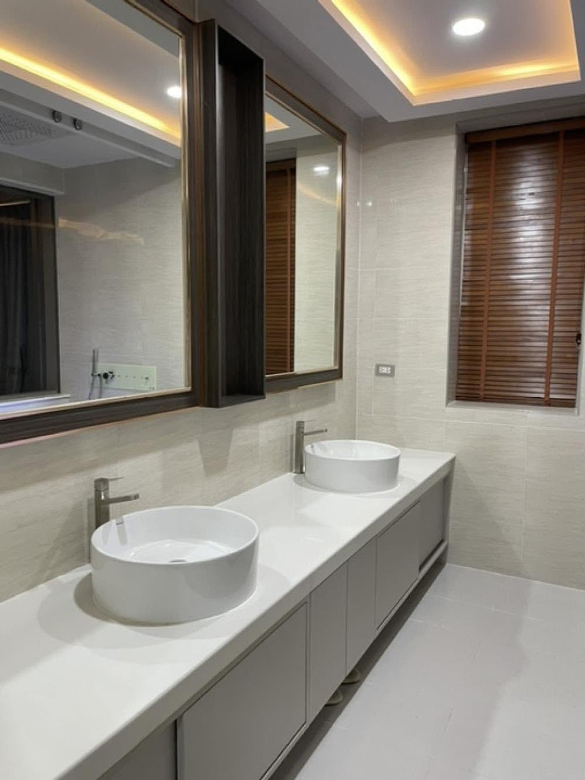 PALM LAKESIDE VILLAS • Usable area 486 sq m. - Land 99.6 sq m. • 5 bedrooms (including maid) + Walk-In Closet • 2 living rooms | 5 bathrooms | 4 large balconies • Thai-Western kitchen | Pet room/storage room | Laundry room • I-Spa Jacuzzi + Rain Shower System, color changing lights • Digital Door Lock | Remote-controlled parking for 2 cars | 8-point CCTV cameras • Private swimming pool + waterfall curtain | BBQ area Complete facilities • Air conditioner 9 | TV 5 | Washing machine • Electric–gas stove + range hood • Dishwasher | Water filter | Oven | Microwave • Refrigerator 2 | Wine refrigerator