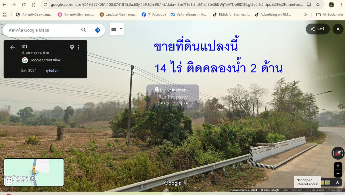 Empty land for sale, 14 rai, opposite Thung Chang Subdistrict Administrative Organization, next to 8 lane road, Route 101, Nan-Laos Road, Hongsa Power Plant, Nan Province, on the way to Lao PDR. Land for sale next to Nan-Thung Chang Road, main road 101. Next to the main road 101 Nan Thung Chang to Lao PDR. The land is on the opposite side of Thung Chang Subdistrict Administrative Organization. Adjacent to a public canal on both sides If interested, call Contact number