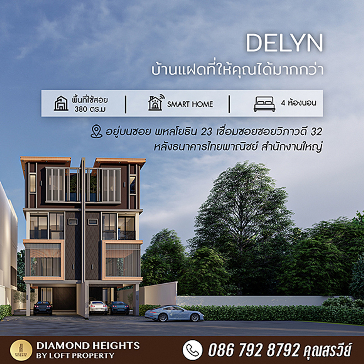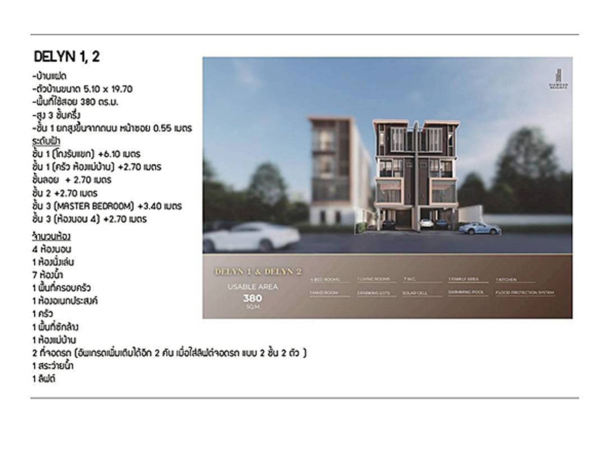 Semi-detached house, 4-story building, supervised by engineers and architects. Pay attention to every detail as if it were our own residence. With premium grade materials On a potential location In the heart of the business district Supports growth in the near future Only 3 units Get many special privileges Complete with free gifts and promotions, straight from the cover, not fake. according to the details provided Option Additional options - There is an elevator and a swimming pool. and an elevator for parking an additional 2 cars We reserve the right only for customers who have reserved a contract You can contact and inquire every day. Information and consulting services by experts Make an appointment to see the actual location by phone number or add Line Contact number Lane : https://line.me/ti/p/~best_home2015