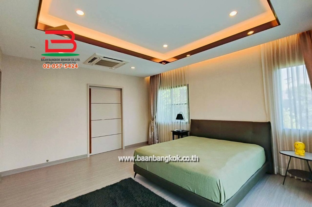 Property code 11608: Single house, Ratchaphruek Road **Plot coordinates 13.93915099,100.48675189 Property type: 2-story detached house with 4 bedrooms, 4 bathrooms, 1 maids room (attached bathroom), 1 kitchen, 1 office room, 1 large hall, can park 3 cars, granite flooring on the ground floor. The floor on the upper floor is laminate, equipped with mosquito screens, wrought iron, water pump, water tank, air conditioner. The house emphasizes openness, airiness, and elegance. Shady atmosphere with gardens around the house. The house is located opposite the garden. Near the clubhouse, swimming pool, fitness room, 24-hour security system, CCTV cameras, exit with key card. Travel in and out easily through many channels, many restaurants, convenience stores. Selling at a special price as cost price Area: 98 sq m (usable area 308 sq m) Selling price: 13,800,000 baht. Project: The Palm Chaengwattana-Chaiyaphruek Village **Near Singapore International School Nonthaburi ** Ask for more information. ** Khun Kit Contact number Office Contact number, Contact number Location: Main Road, Ratchaphruek, Secondary Road, Chaiyaphruek, Bang Tanai Subdistrict Pak Kret District, Nonthaburi Highlights/Nearby Places : - Singapore International School Nonthaburi - Robinson Lifestyle Ratchaphruek - Lotus Department Store - North Ratchaphruek - Central Chaengwattana-Pak Kret Department Store - Major Pak Kret Department Store - Vibharam Pak Kret Hospital - Krung Thai Hospital - Pak Kret 2 Hospital - Koh Kret Tourist Attractions Convenient travel in and out in many ways: - Ratchapruek Road - Chaengwattana-Pak Kret Road - Chaiyaphruek Road - 345 Road - Chamber of Commerce Road