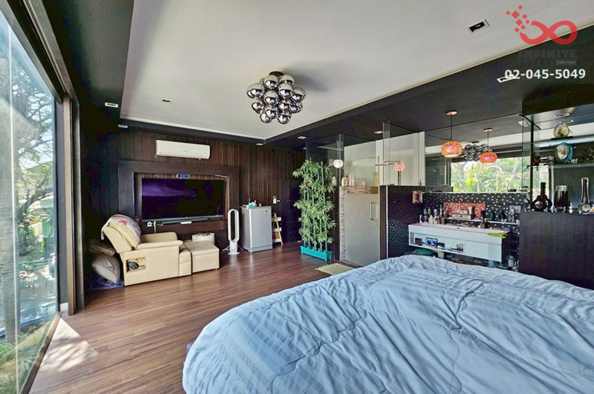 Contact: Khun Praew Contact number office : Contact number Project name: Baan Panya Phatthanakan Location: Soi Phatthanakan 30, Suan Luang Subdistrict, Suan Luang District, Bangkok 10250 Area: 136.9 square wah | usable area 500 square meters Number of rooms: 5 bedrooms, 5 bathrooms, 2 kitchens, living room, office room Decoration: Modern style, adding a 2-story building next to the main house. and adding a storage room in front of the house and adding a kitchen outside the house Parking: 6 cars Central : Security Property facing direction: Southeast Review: Premium Luxury detached house for sale, Panya Village, Phatthanakan Soi 30, good location, connected to many roads such as Sukhumvit/Ekkamai/Rama 9. On the plot of land at the edge of this project, the space has been allocated perfectly. There are two houses built next to each other, creating a path that connects them perfectly. Modern style house decoration Focus on large, tall mirrors giving a feeling of airiness. The atmosphere around the house is decorated with trees, giving a feeling of shady, peaceful and private. Suitable for large families looking for a comfortable home to live in. in the long term Nearby places : Shopping and Lifestyle Places - Seacon Square Srinakarin - The Nine Center Rama 9 - Makro On Nut - Tops Market Phatthanakan 30 educational institution - Kasem Bundit University - Triam Udom Suksa Pattanakarn School - Thai-Nippon Institute of Technology hospital - Vibharam Hospital - Samitivej Srinakarin Hospital travel - BTS On Nut Station - Airport Rail Link Hua Mak - Phatthanakan Expressway Si Rat Expressway