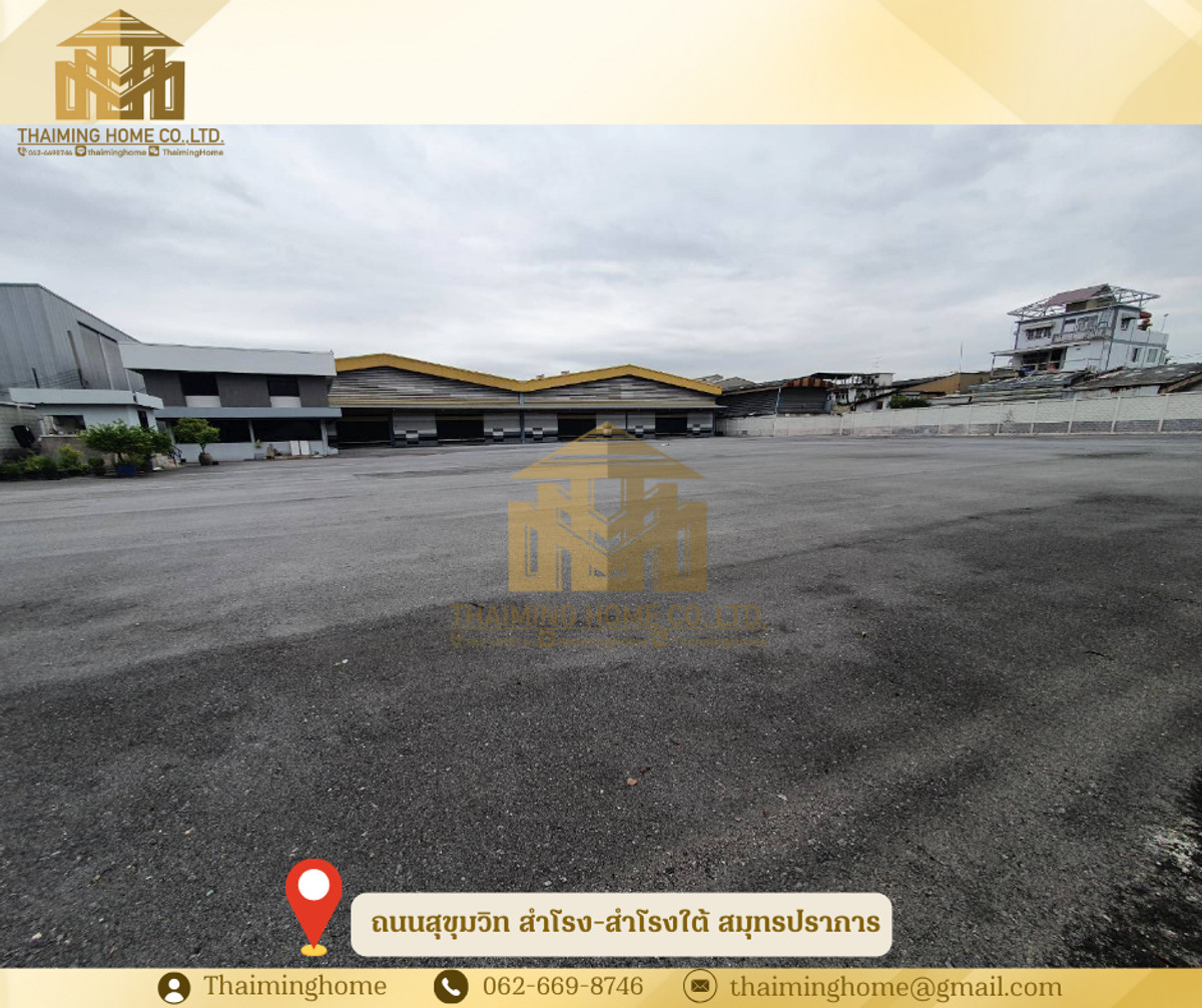 Rent a warehouse with an office space of 10,500 sq.m. Samrong Tai, Phra Pradaeng, Samut Prakan [TW5-220226] ✅ Details • purple area • I need a warrant. Four. - Area 6 rai, 2 ngan, 17 square meters. - The total area is 10,500 square meters. - Warehouse area 3,800 square meters. - 80 meters wide and 48 meters deep. - There are two floors of Office with a usable area of 400 square meters. M. - Parking lot is 6,400 square meters. M. - Many trailers are parked and easy to get in and out. - Suitable for distribution centers, warehouses, stockings. 🚇 Nearby Locations - Imperial World Samrong - a hospital ward - Grandfather Saming Prai Industrial Area - Port: Grandfather Saming Prai Road has an important port for transporting goods and crossing the ferry. - Main Road: Connect Sukhumvit Road, Grandfather Road, and Kanchanaphisek Road (South Ring), including near the expressway and Bhumibol Bridge to cross to the Phra Pradaeng side or enter the Rama 3 area. ☑️ Purchase/Rental Conditions - a three-year contract - 3 months' insurance, 1 month's advance. - Lease price is 700,000 baht per month. ----------------------------------------------------------------- บริษัท ไทยหมิง โฮม จำกัด Thaiming Home Co.,Ltd. 泰明房园 房产公司 ------------------------- Contact ติดต่อ : Contact number Contact : Contact number คุณหมิง(中文) Line ID: thaiminghome Line ID: @thaiminghome https://lin.ee/PkkHwYv Wechat : ThaimingHome E-mail : Contact email -----------------------------------------------