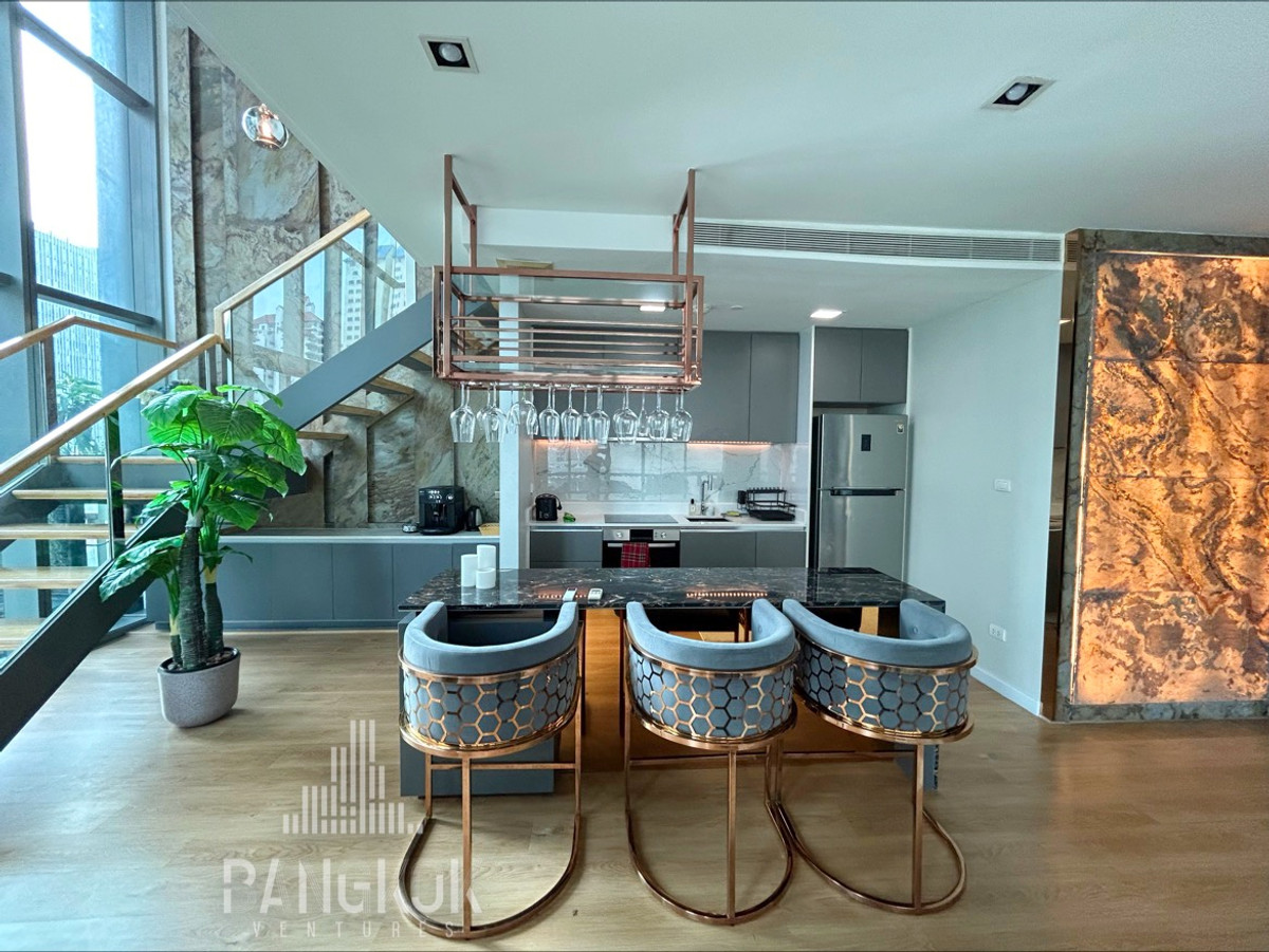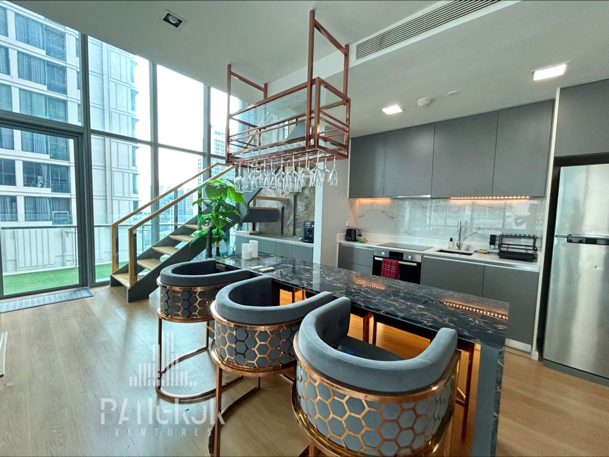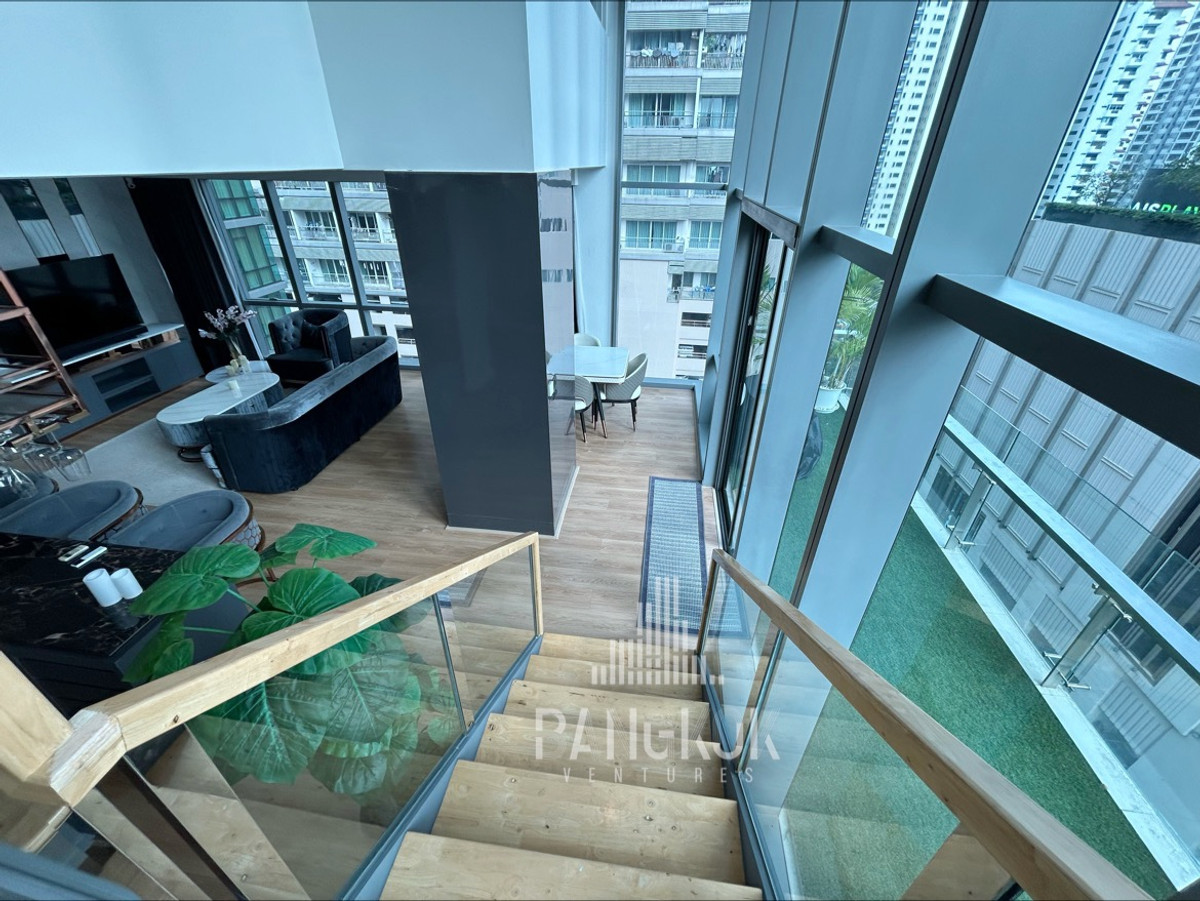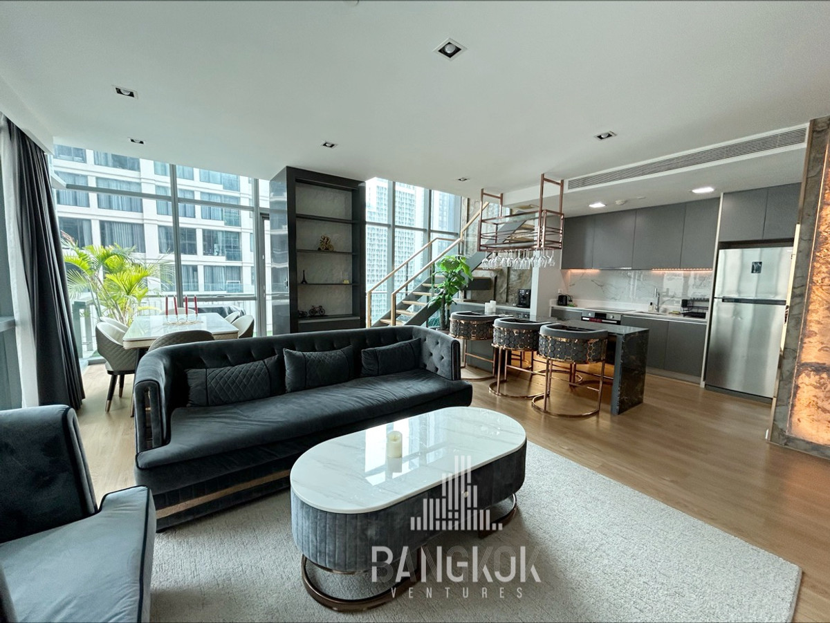 Corner Duplex 2BR Apartment with a large balcony - FOR RENT in Asoke 🏙️ Ultimate dreamy city luxury loft unit 😍 2BED | 3BATH | 128SQM | MID FLOOR Spacious living space with over 11sqm private terrace