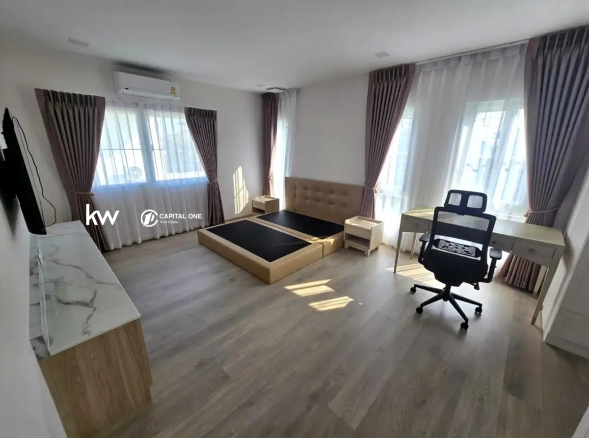 🏡 For rent: Single house Villaggio 2 Srinakarin-Bangna (Villaggio 2) 🌿✨ Beautiful house, premium location, resort atmosphere. Opposite the club house Pool view! 🏠 House details: 📐 Area: Land 63 sq m. | Usable area 153 sq m 🛌 Functions: 3 bedrooms | 3 bathrooms | 1 multi-purpose room | 1 living room | 1 kitchen 🌳 Garden next to the house: shady, spacious area🚗 Parking: 2 cars indoor (can stack another 2 cars) ✨ Highlights: The bedroom has a view of the swimming pool. The house is opposite the garden and clubhouse. Convenient and very good atmosphere 🛋️ Fully Furnished: Fully furnished. Ready to move in immediately 🚆 Location and transportation: 📍 Located on Buanakarin Road. Connecting Srinakarin - Bangna-Trad - Nam Daeng 🛍️ Near Mega Bangna & IKEA, only 12 minutes ✈️ Near Suvarnabhumi Airport, about 20 minutes 🚗 Near Bangna-Trad Expressway, Kanchanaphisek Ring Road and motorway 🎓 Near leading international schools: Concordian, Berkeley, Bangkok Patana, Anglo Singapore, Thai-Singapore 💰 Rent: 79,000 baht/month (2 months insurance + 1 month in advance | Minimum 1 year contract) ✅ Accepting foreign tenants | ❌ No pets ❌ No Co-Agent / No Co-Agent 📞 If interested, ask for details. Or make an appointment to see the house before you miss the opportunity: 📲 Call: Contact number💬 Line ID: @c1property 🔗 Click: https://lin.ee/Yg0DAXm