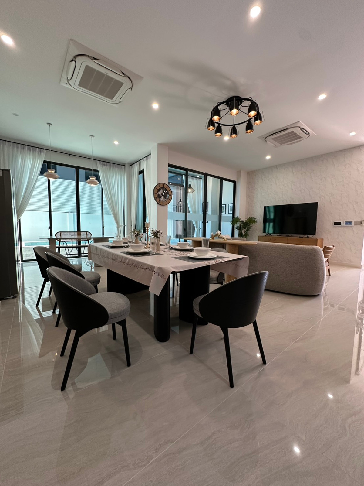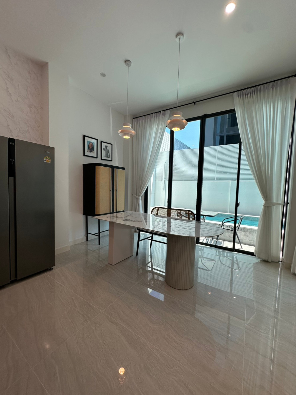 🏡 For rent, a luxurious 3-story Pool Villa with elevator | The Honor Yothin Phatthana ✨ Luxury Rare Item level house with private swimming pool + elevator in the house 🌿Quiet, private location near the center of the project. It already feels like staying at a private resort every day 📐 House details • Land approximately 60 sq m. • Usable area approximately 455 sq m. • 3-story house with private elevator ✨Complete functions for every living situation • 5 bedrooms • 4 bathrooms • 1 maids room • 1 large Living / Family room • Parking for 3 cars • Private swimming pool in the house ✨ Special highlights • Private Pool Villa, very rare in this zone • There is an elevator in the house, convenient for all ages.• Fully furnished + complete electrical appliances. Fully Furnished • Wide space, airy, luxurious, high ceilings • The atmosphere is quiet. High privacy• Move in immediately 🏢 Facilities in the project (Premium) • Clubhouse• Swimming pool • Fitness • Relaxation garden • 24 hrs. security guard + CCTV 📍 Potential location Yothin Phatthana – along Ramindra Expressway • Near CDC / Crystal Park / Central EastVille • Near many international schools • Entry-exit along Ekkamai Expressway - Ramintra / Ramkhamhaeng / Lat Phrao / Rama 9, very convenient 💰 Rent 250,000 baht/month 📞 Interested in inquiring / making an appointment to view the house Call: Contact number LINE: saiparn.net WeChat: saiparn_dhome WhatsApp: Contact number