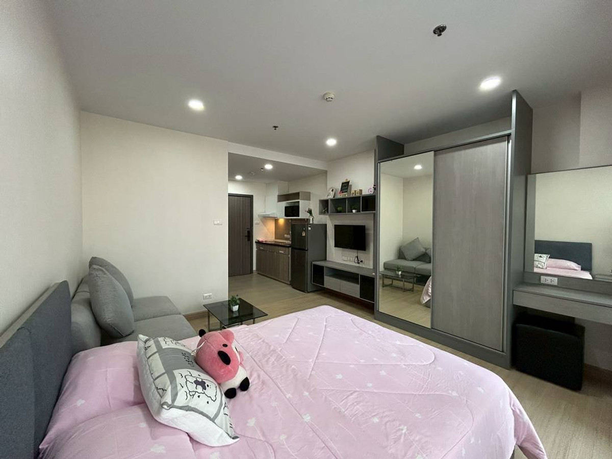 Building A, 30th floor, Studio , 28sq.m. 🛋️ Fully furnished with electrical appliances, ready to move in 💰 Rent: 12,500 THB/month 📑 Contract: 1 year (2 months deposit + 1 month advance) Facilities: 🏊 Swimming pool / Fitness / Garden / Co-working Space 🚇 Near MRT Orange Line, Airport Link Ramkhamhaeng, and expressway – convenient location