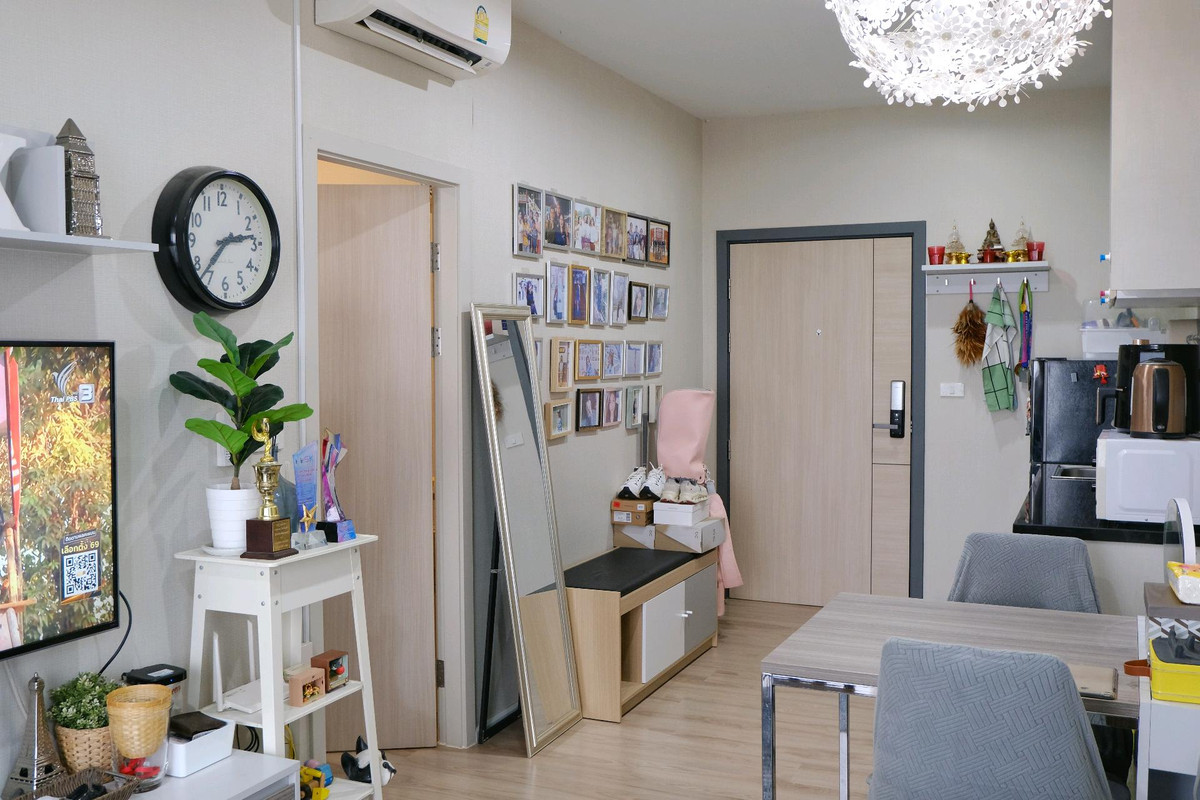 Rare Item ! Amber Tiwanon Condo next to the BTS. Tiwanon Intersection Station Beautiful room, good condition Beautifully decorated and ready to move in. Fully furnished with electrical appliances Just bring your bags and move in right away. Great price! The special thing about this condo is Its a room on the top floor, the 37th floor, which is a very private private zone. There are only 3 rooms on the whole floor and you can walk up to the sky garden just a few steps . But whats even more special for this room is the Bonus room, an extra 10 sq m of additional usable space for free. Adds extra usable space to the room in a very Extra way without any additional cost...a great value. ! Property details : - 37th floor - usable area 34.76 sq m. + extra bonus area rm. another 10 sq m. - House number 245/562, room facing north, beautiful view, comfortable to live all year round, not hot, not exposed to the sun - 1 bedroom, 1 bathroom - beautifully decorated, fully furnished, excellent condition, owner takes good care of it. - with electrical appliances, 2 air conditioners / tv. / refrigerator / water heater / microwave - common fee 40 baht / sq m. - parking rights for 1 car and parking rights for guests 2 times a month - there is a complete central area. Including swimming pool, fitness, stream, garden size 1 rai and sky garden Nearby places : - Big C Tiwanon - The Mall Ngamwongwan - HomePro Prachachuen - Nonthavej Hospital - Ministry of Public Health ****** Price 2,600,000 baht ****** Location : Bangkok-Nonthaburi Rd., Bang Khen Subdistrict, Mueang District, Nonthaburi Province Coordinates: 13.83941057,100.51565172 Map: https://maps.app.goo.gl/nnQ3tpwivtJuNhSF9 If interested, contact: Khun Pin Mobile number: Contact number Line : pinpin_tang
