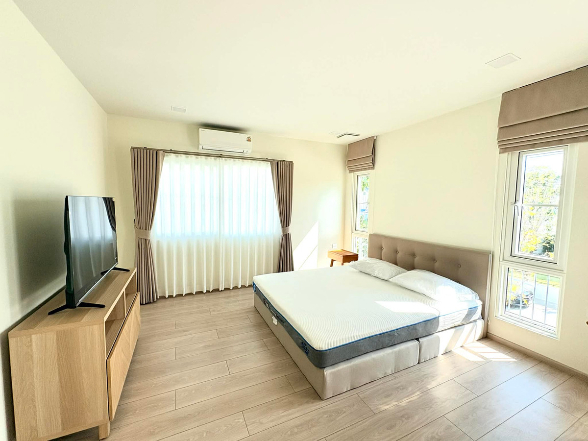 Villaggio 3 SrinakarinâBangna (FOR RENT) Ref.no : M713 âĻ New house, never rented out | Someone to take care of the garden + internet 2-story detached house with complete furniture and electrical appliances. You can move in immediately. Suitable for families or foreigners. SrinakarinâBangna location Convenient transportation House details Usable area 160 sq m 4 bedrooms | 3 bathrooms 2 parking spaces Ready to Move Furniture & electrical appliances Sofa, dining table, bed, wardrobe Built-in kitchen, large oven, refrigerator, microwave Washing machine, air conditioner in every room 2 TVs (65" and 55") Project facilities Clubhouse | Swimming pool | Fitness | Common garden | Playground | Security & CCTV 24 hrs. Location & Transportation 5 minutes drive to Mega Bangna / IKEA Near Bangna-Trad Expressway and Kanchanaphisek Ring Road Near BTS Bearing / Bangna and shops 7-Eleven Nearby places Concordian International School, Berkeley, ThaiâSingapore Tenant conditions Accept foreigners Allow dogs Do not accept company registration ð° Rent 75,000 baht/month (2 months deposit + 1 month in advance) ð Interested in making an appointment to see/request more information Tel : Contact number (Mild) Line@ : @mfirst | Add Line : https://lin.ee/SaaVHhA