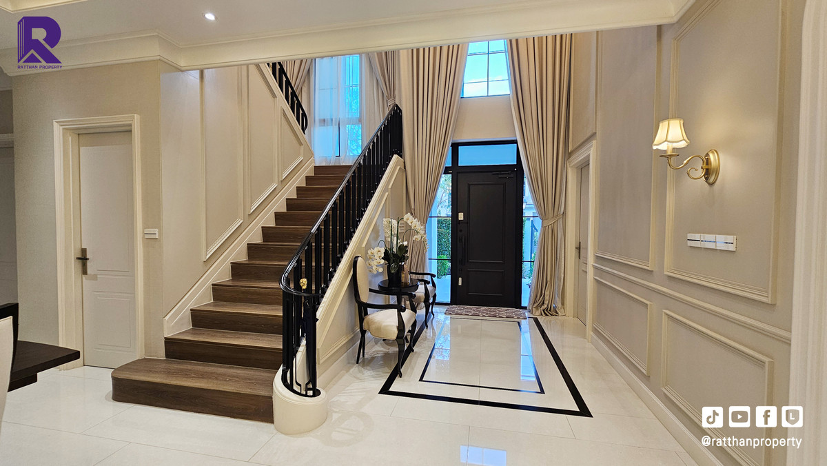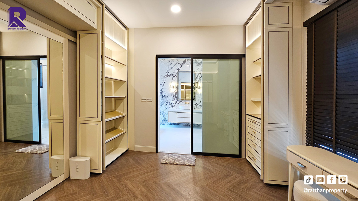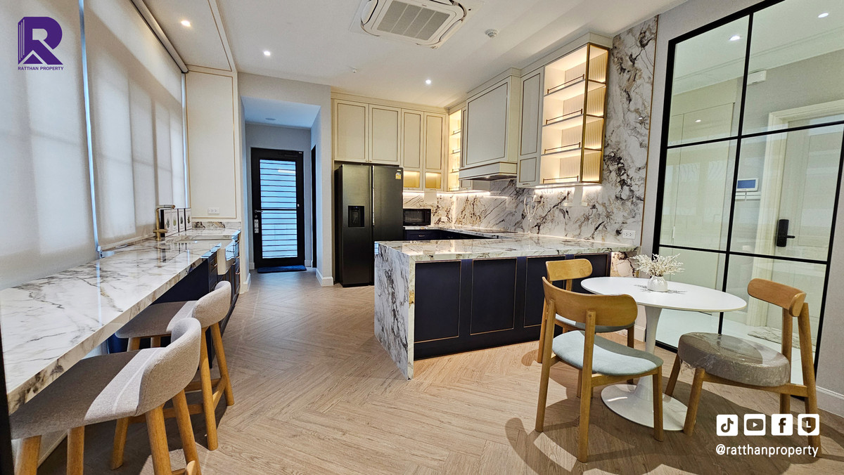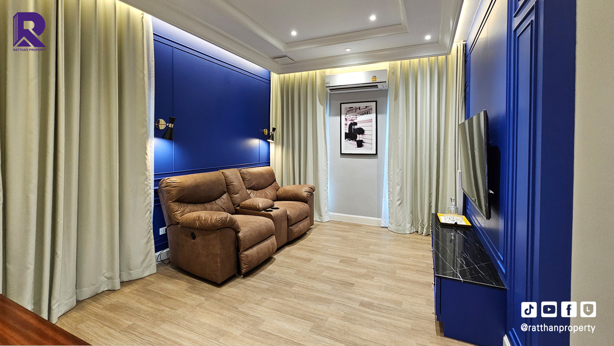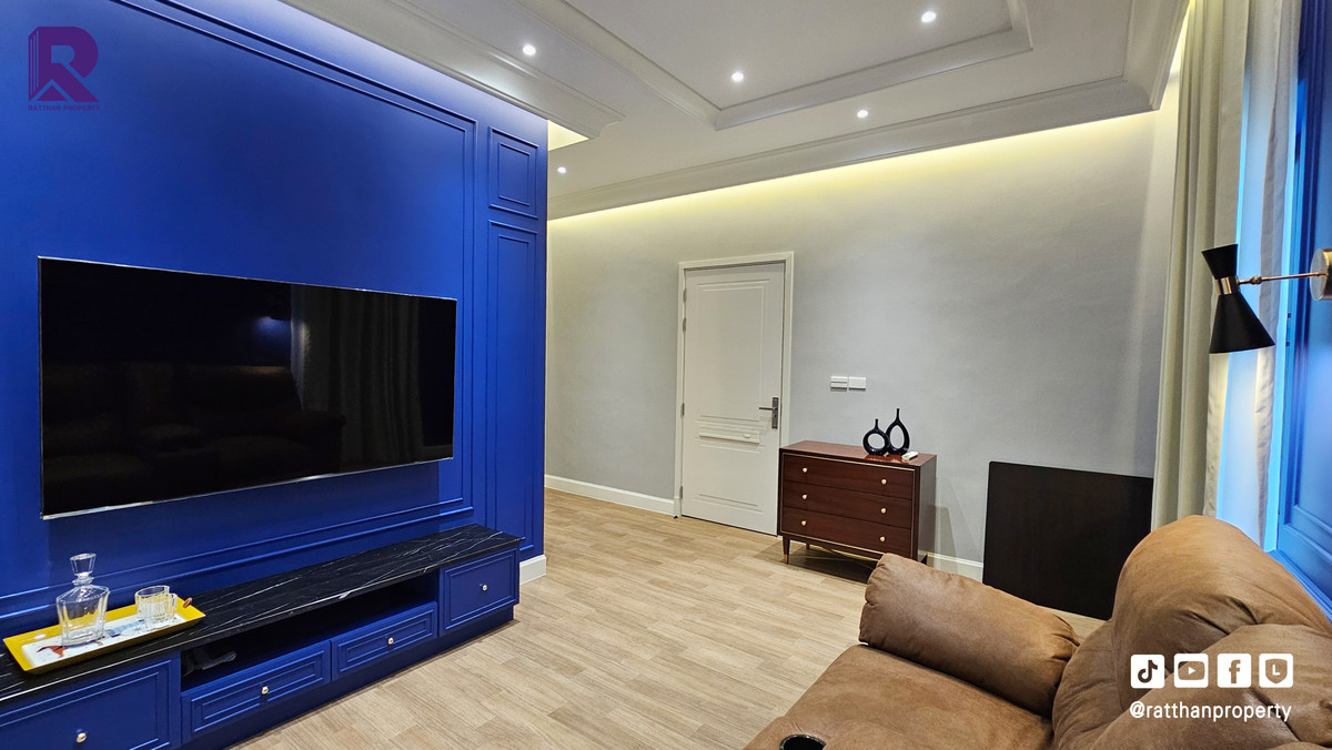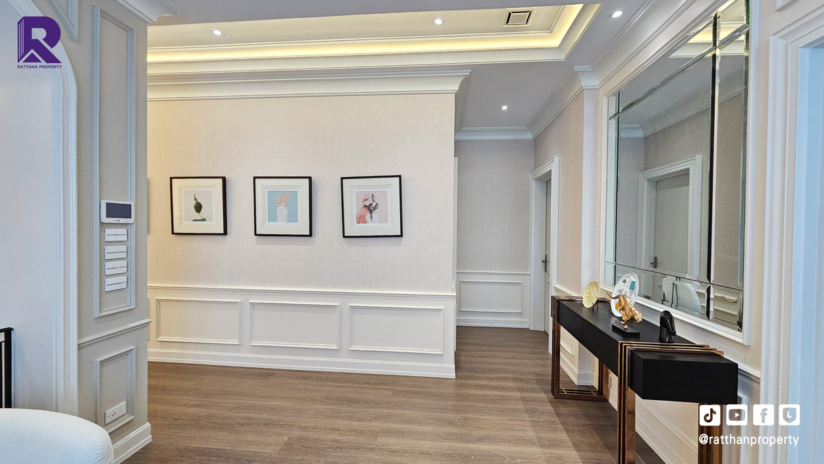 Single house for sale, corner house, decorated and ready to move in. Cheapest price Nantawan Rama 9-Krungthep Kreetha New Road (SH025) Le Marquis house style, French style (Land & Houses) - Area 140.9 sq m, usable area 449 sq m - Front of the house facing southeast - 5 bedrooms | 6 bathrooms | 2 kitchens (Western/Thai) - 1 Buddha room | 1 maids room with en-suite bathroom Separated - 8 parking spaces (4 indoor, 4 outdoor) - Laundry area with furniture to store laundry equipment - Home Automation | AirPlus² - Supports EV Charger - Anti-theft alarm system - Fiber Optic underground throughout the project Facilities - Clubhouse - Swimming pool - Fitness - Co-living & Co-working Space - French Chateau Garden & Lake - High standard security system Nearby places : - Wellington International School : 6.2 km. - Brighton International School : 8.9 km. - Sammakorn Place Ramkhamhaeng : 7 km. - The Paseo Town Ramkhamhaeng : 8.5 km. - The Mall Bang Kapi : 10.6 km. - MRT Sammakorn : 6.7 km. - MRT Srikritha : 8.3 km. - Kasemrad Ramkhamhaeng Hospital : 7.8 km. - Suvarnabhumi Airport : 15 km. Transportation : Entry-exit point of Si Rat Expressway | Rama 9 Expressway | Motorway | Krungthep Kreetha New Road Selling price 59.99 million baht, transfer fee 50:50 *Loan services available Contact: Mai (Broker) Line ID: @ratthanproperty #RatthanProperty #ratthanproperty #NantawanRama9 #Luxury house Rama 9 #Single house Krungthep Kreetha
