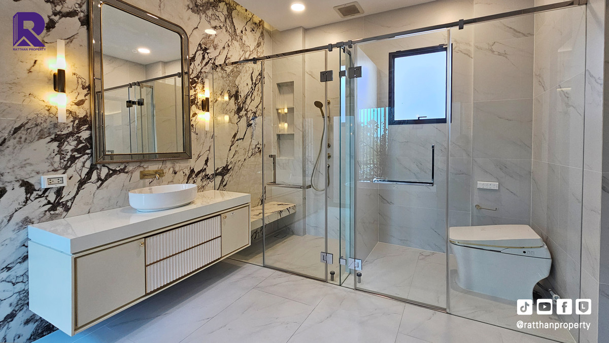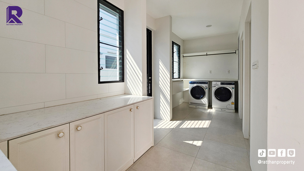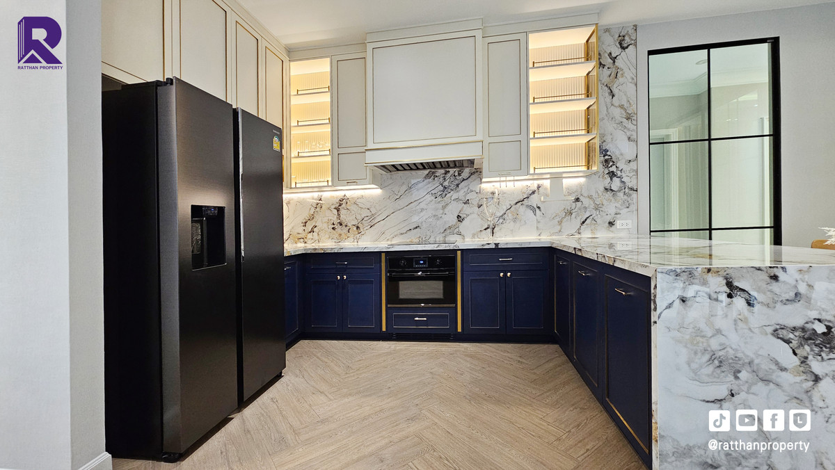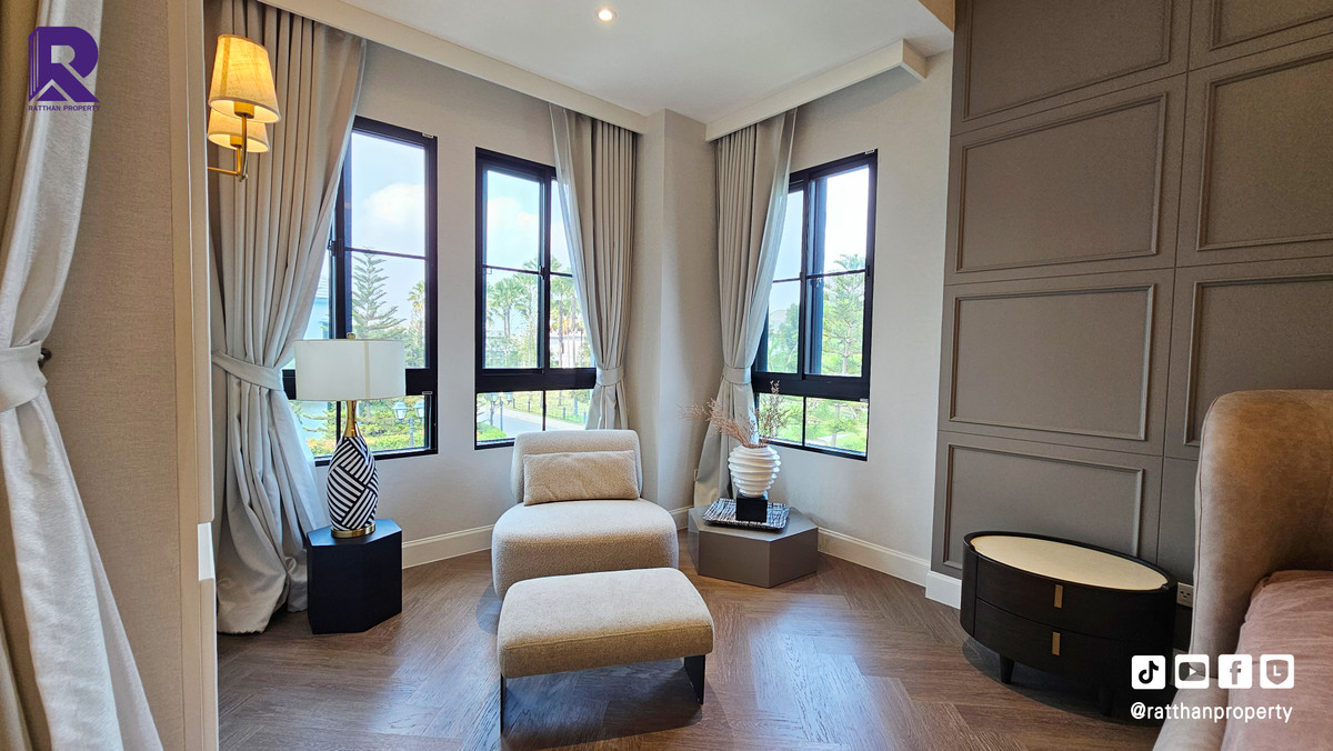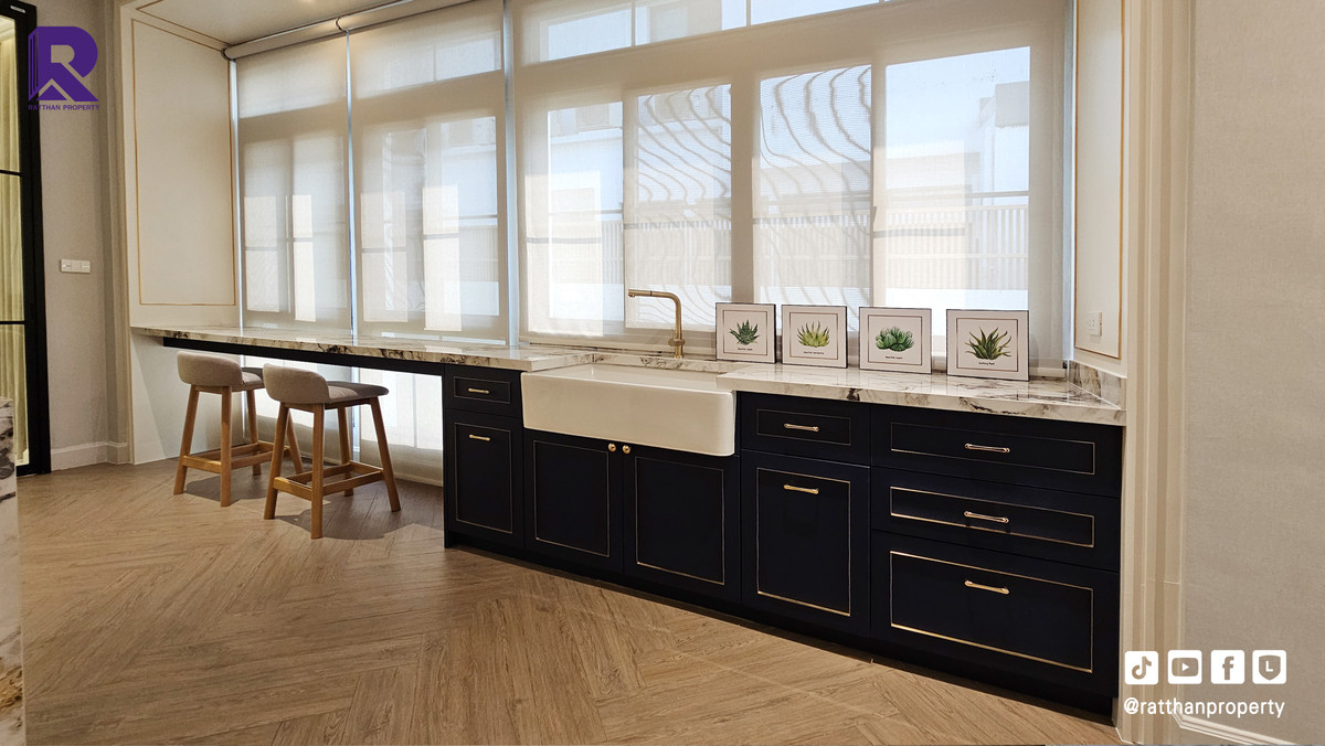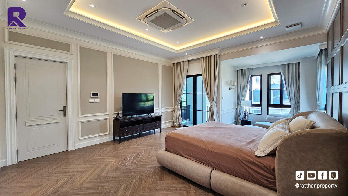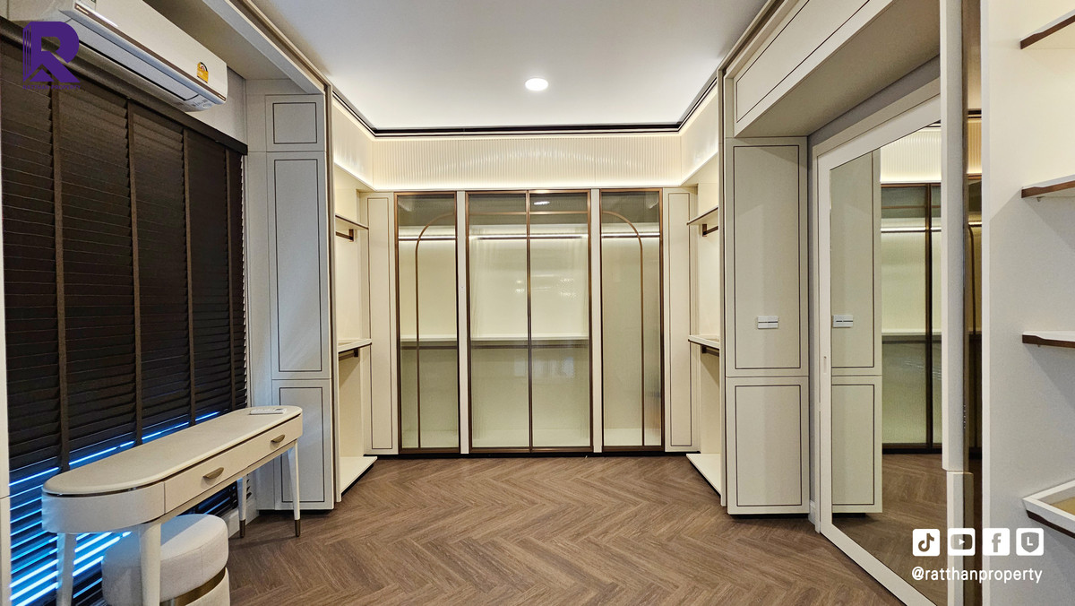 Single house for sale, corner house, decorated and ready to move in. Cheapest price Nantawan Rama 9-Krungthep Kreetha New Road (SH025) Le Marquis house style, French style (Land & Houses) - Area 140.9 sq m, usable area 449 sq m - Front of the house facing southeast - 5 bedrooms | 6 bathrooms | 2 kitchens (Western/Thai) - 1 Buddha room | 1 maids room with en-suite bathroom Separated - 8 parking spaces (4 indoor, 4 outdoor) - Laundry area with furniture to store laundry equipment - Home Automation | AirPlus² - Supports EV Charger - Anti-theft alarm system - Fiber Optic underground throughout the project Facilities - Clubhouse - Swimming pool - Fitness - Co-living & Co-working Space - French Chateau Garden & Lake - High standard security system Nearby places : - Wellington International School : 6.2 km. - Brighton International School : 8.9 km. - Sammakorn Place Ramkhamhaeng : 7 km. - The Paseo Town Ramkhamhaeng : 8.5 km. - The Mall Bang Kapi : 10.6 km. - MRT Sammakorn : 6.7 km. - MRT Srikritha : 8.3 km. - Kasemrad Ramkhamhaeng Hospital : 7.8 km. - Suvarnabhumi Airport : 15 km. Transportation : Entry-exit point of Si Rat Expressway | Rama 9 Expressway | Motorway | Krungthep Kreetha New Road Selling price 59.99 million baht, transfer fee 50:50 *Loan services available Contact: Mai (Broker) Line ID: @ratthanproperty #RatthanProperty #ratthanproperty #NantawanRama9 #Luxury house Rama 9 #Single house Krungthep Kreetha
