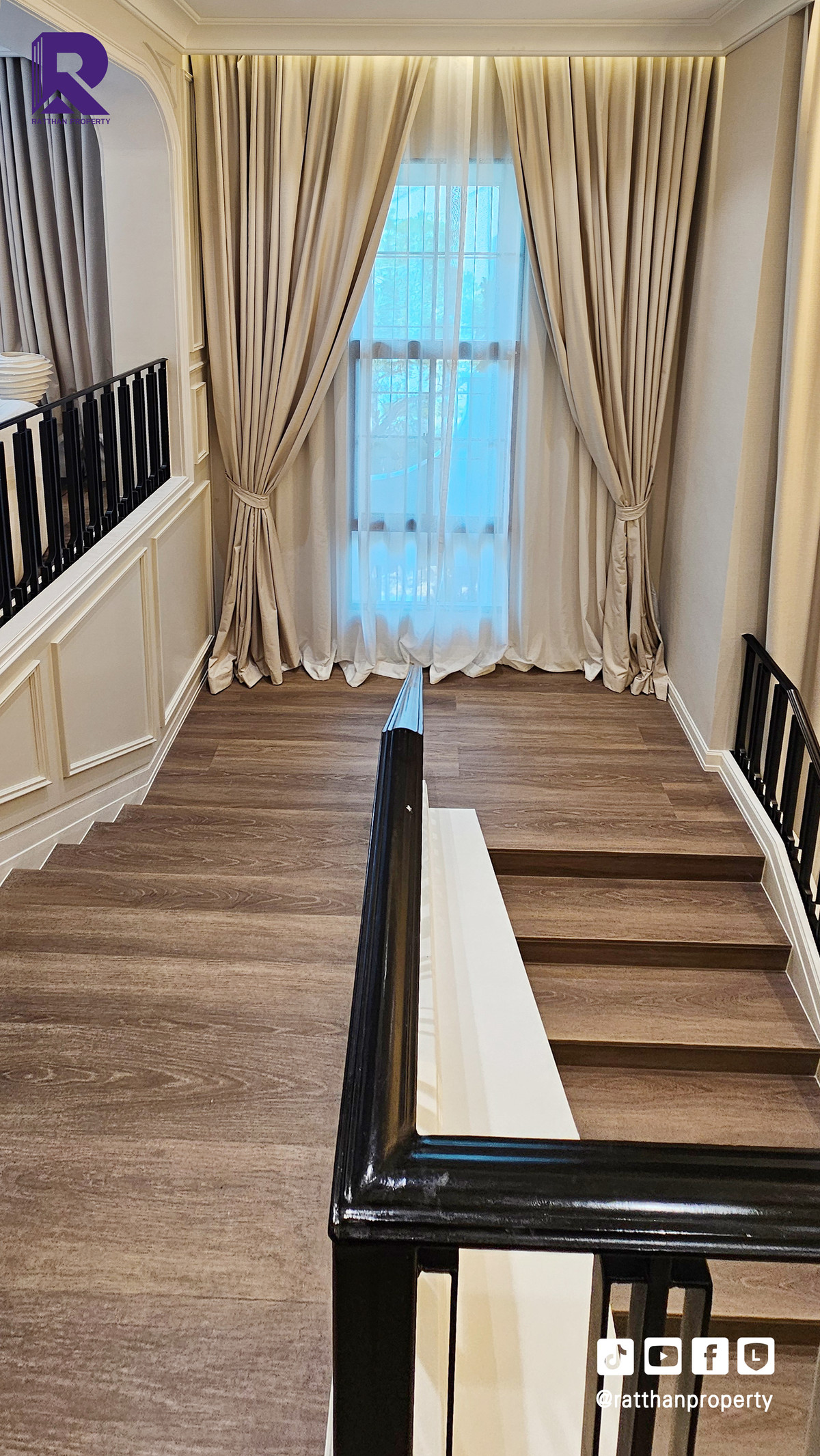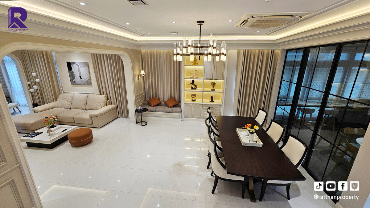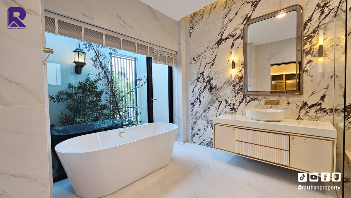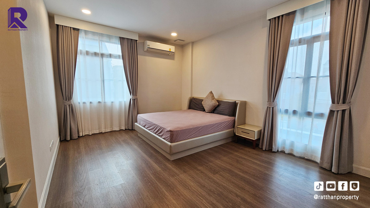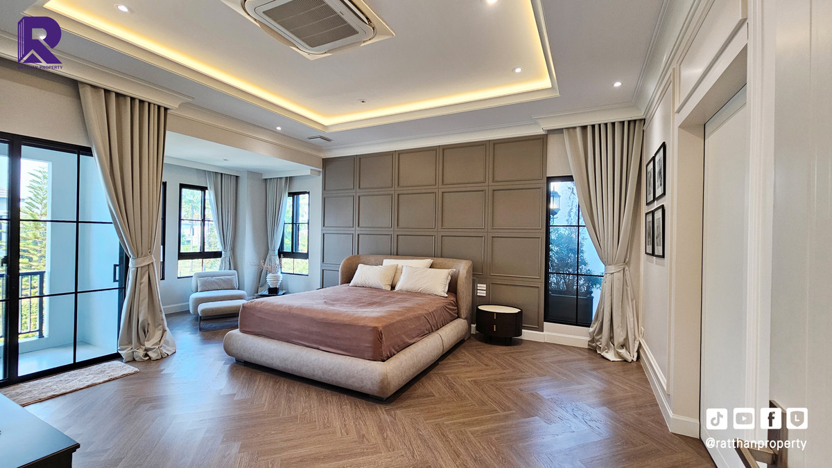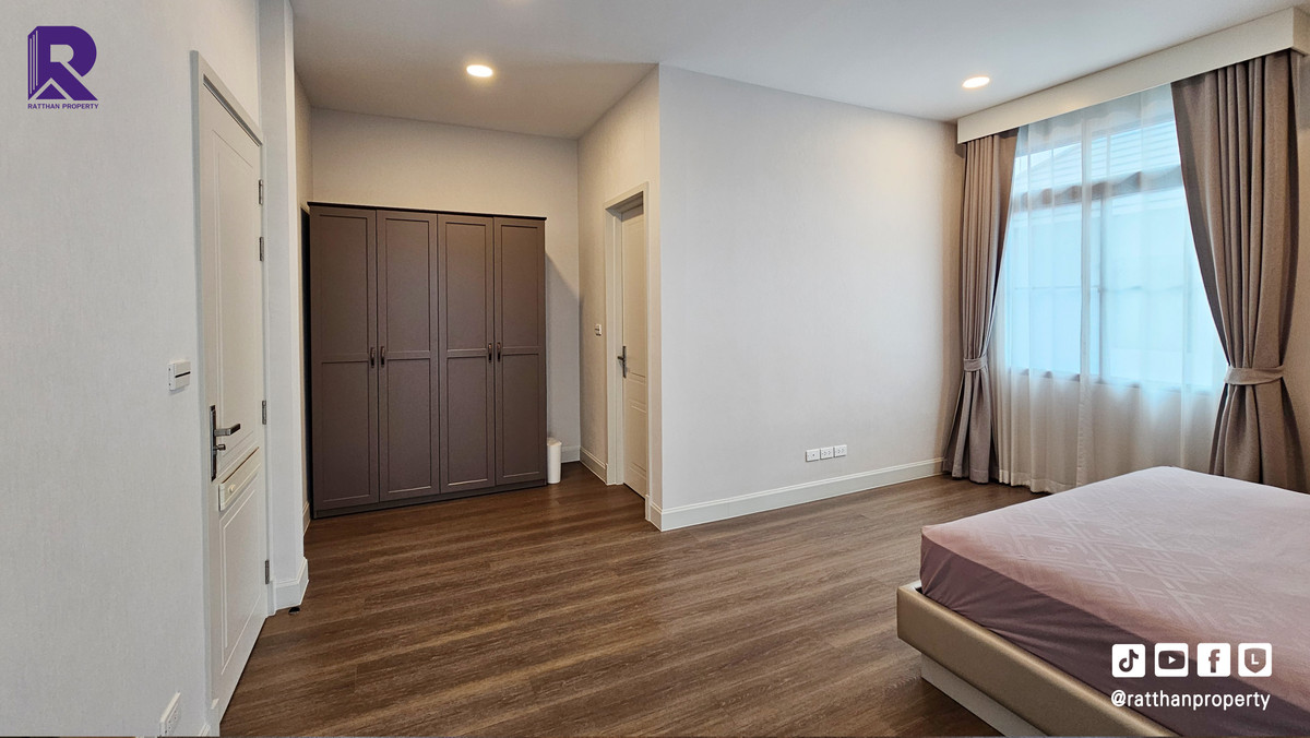 Single house for sale, corner house, decorated and ready to move in. Cheapest price Nantawan Rama 9-Krungthep Kreetha New Road (SH025) Le Marquis house style, French style (Land & Houses) - Area 140.9 sq m, usable area 449 sq m - Front of the house facing southeast - 5 bedrooms | 6 bathrooms | 2 kitchens (Western/Thai) - 1 Buddha room | 1 maids room with en-suite bathroom Separated - 8 parking spaces (4 indoor, 4 outdoor) - Laundry area with furniture to store laundry equipment - Home Automation | AirPlus² - Supports EV Charger - Anti-theft alarm system - Fiber Optic underground throughout the project Facilities - Clubhouse - Swimming pool - Fitness - Co-living & Co-working Space - French Chateau Garden & Lake - High standard security system Nearby places : - Wellington International School : 6.2 km. - Brighton International School : 8.9 km. - Sammakorn Place Ramkhamhaeng : 7 km. - The Paseo Town Ramkhamhaeng : 8.5 km. - The Mall Bang Kapi : 10.6 km. - MRT Sammakorn : 6.7 km. - MRT Srikritha : 8.3 km. - Kasemrad Ramkhamhaeng Hospital : 7.8 km. - Suvarnabhumi Airport : 15 km. Transportation : Entry-exit point of Si Rat Expressway | Rama 9 Expressway | Motorway | Krungthep Kreetha New Road Selling price 59.99 million baht, transfer fee 50:50 *Loan services available Contact: Mai (Broker) Line ID: @ratthanproperty #RatthanProperty #ratthanproperty #NantawanRama9 #Luxury house Rama 9 #Single house Krungthep Kreetha