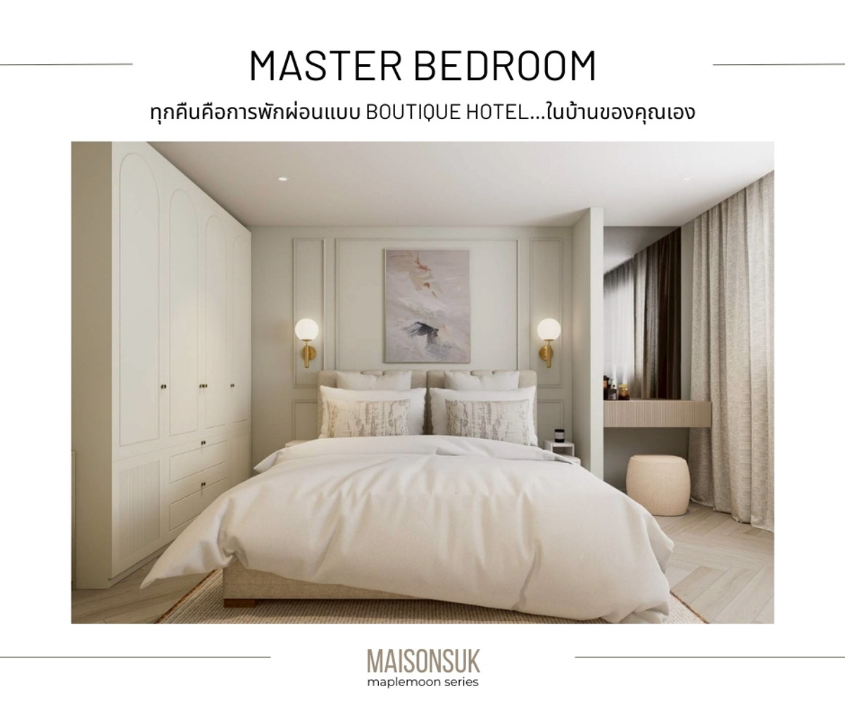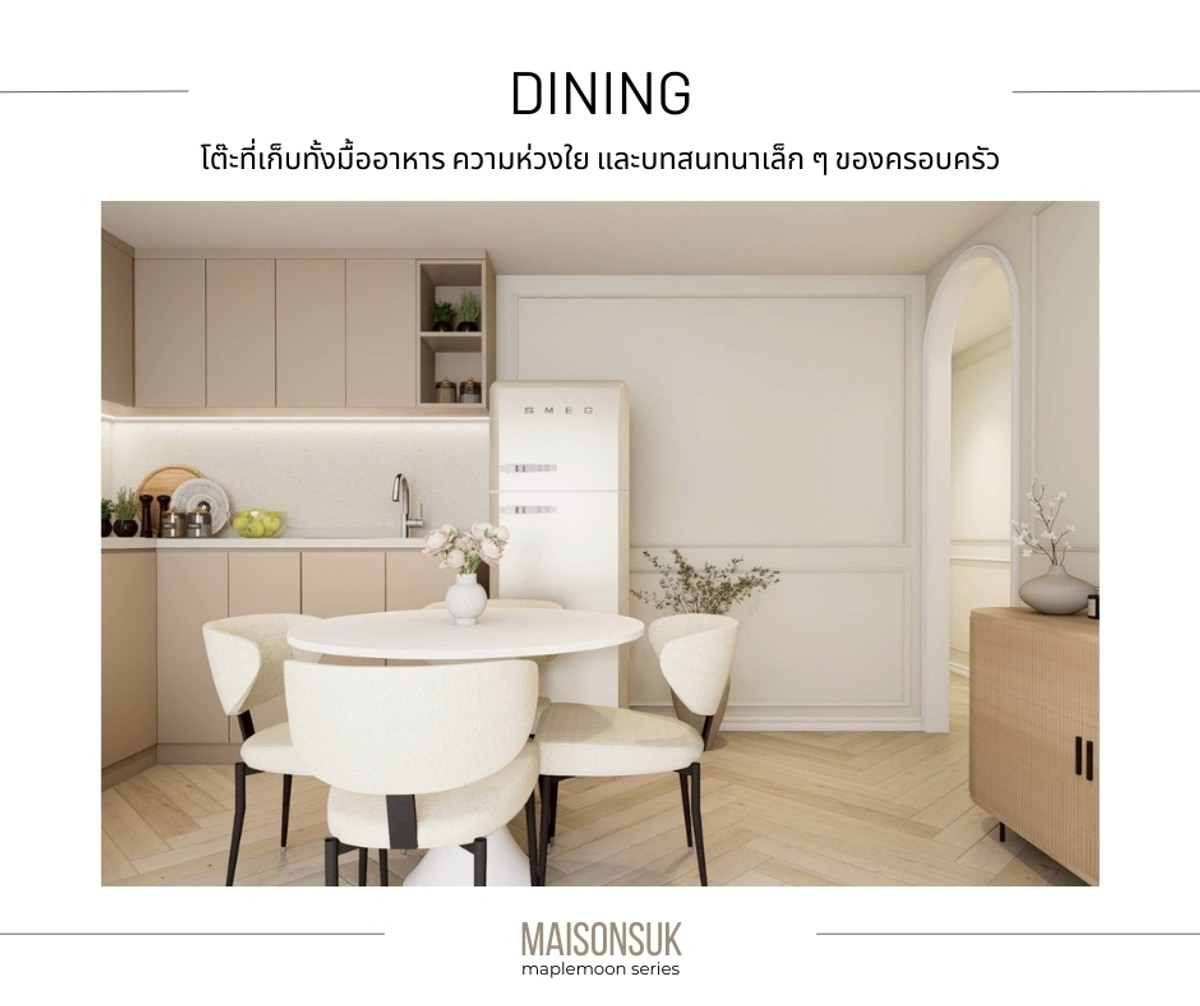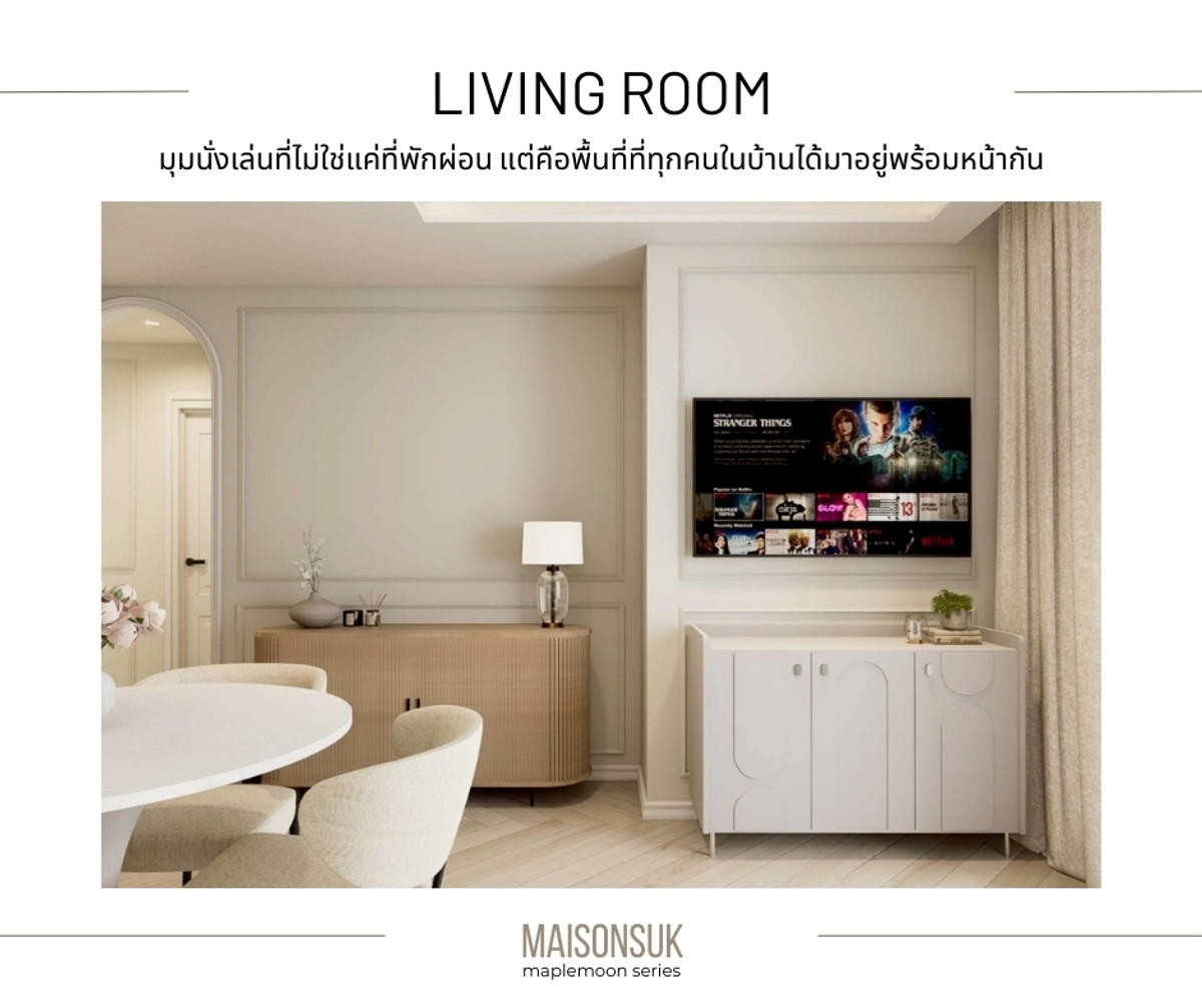 MAISON SUK - Warm European style condo. that feels like a Boutique Home Subhayakaew Tower 63 sq m | 2 bedrooms, 1 bathroom | 24th floor | Transparent city view as far as the eye can see. Launch price only 3.59 million baht [Ready to move in on 1 April 2026] The design in the room is inspired by modern European homes. Framed cornice walls, cream, beige, ivory tones and soft lighting. Create a gentle, luxurious atmosphere. Highlight of this room (Highlight Maison Suk) ✨ Parisian Soft Modern design: moldings, curved lines and cream-beige tones. Gives the feel of a luxurious European home in a gentle way. ✨ Bedroom feels like Boutique Hotel: Feels like staying in a small, warm hotel…every night. ✨ Corners that connect families: sofas, dining tables, and common areas. It is designed to be a gathering point for people in the house. ✨ Wide living room Clear dining corner The bedroom is proportional. Really live every day ✨ The second bedroom can be used as a children's room, office room, or living room. Suitable for people looking for a house that is 💞 Suitable for couples or small families who want to have a warm home to live together. ✅ 63 sq m. | 2 bedrooms, 1 bathroom ✅ Kitchen set + complete furniture Ready to move in ✅Digital Door lock ✅ 3 air conditioners ✅Water heater ✅TV 42 - 50 inches x 2 units ✅ 2 layers of curtains ✅Bed with mattress and pajamas, size 6 feet, master bedroom ✅Bed with mattress and pajamas size 5 feet, second bedroom ✅Dining table + chairs ✅Large sofa set + fluffy carpet Opening price before renovation, special only 3.59 million baht (from normal 3.69 million baht) [Ready to move in on 1 April 2026] ** All photos are 3D images from the design. ================ [ 𝗖𝗼𝗻𝘁𝗮𝗰𝘁 ] • Mobile: Contact number (New) • 𝗧𝗶𝗸𝘁𝗼𝗸 : maplemoon room project