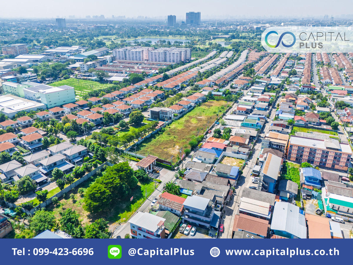 Land for sale Selling a large piece of empty land, area 1368 square meters (3-1-68 rai), can be used immediately. Ready for the project located on the road. Phraya Suren Soi Phraya Suren 21, Intersect