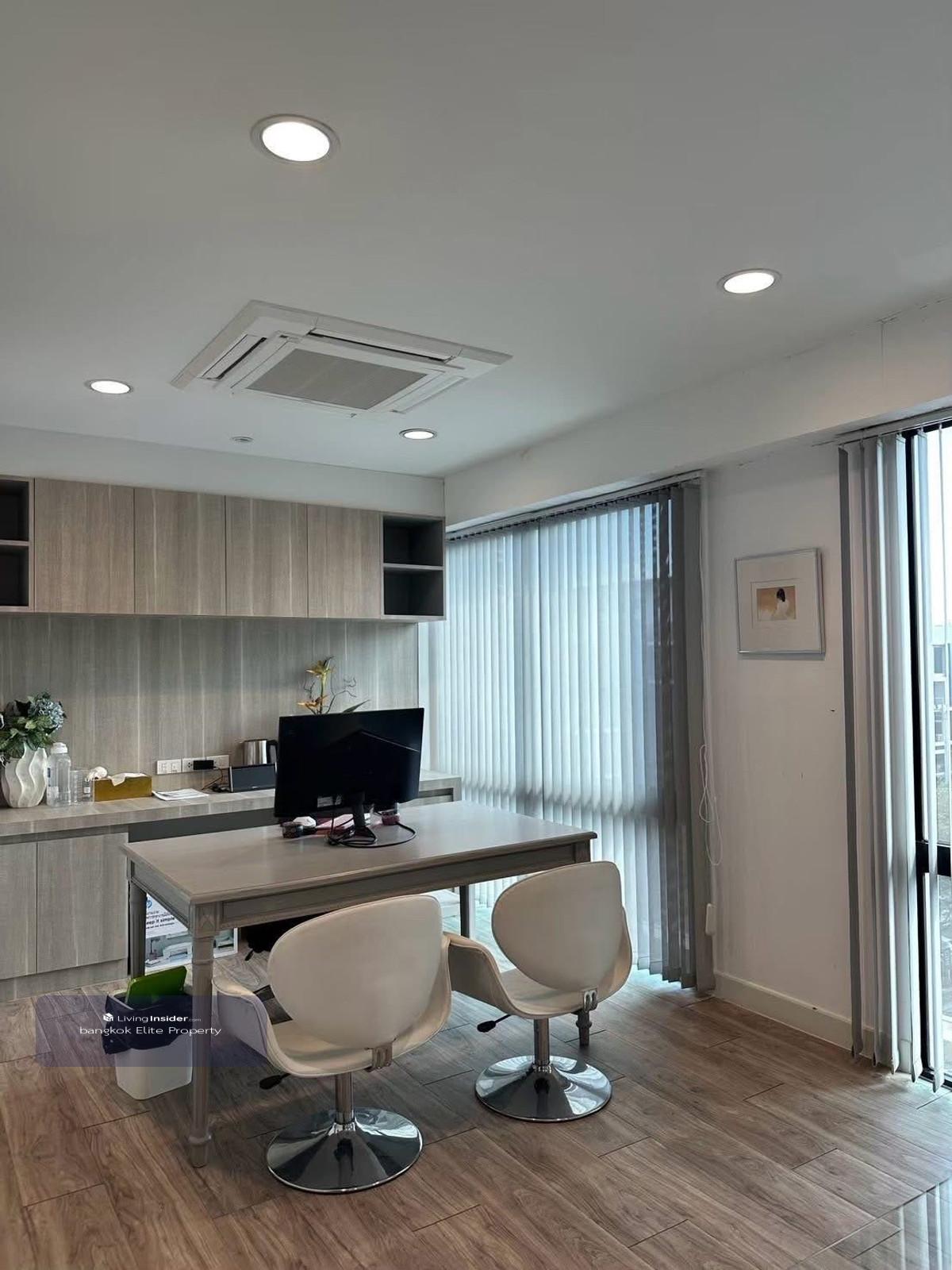Home Office 4.5 floors, near Lertlah School and the expressway , suitable for live selling products, warehouse, clinic , near Si Rat Expressway and Lat Phrao, Ekkamai, Ramintra ✅ Details :: - Width 6 meters - Land : 25 wa - Usable area : 363 sq m - Work room : 4 - Bathroom: 4 - Parking: 2 in front of the house + 43 cars for visitors ⭐ 1st floor: Living room + meeting room + Out Door eating place with decorations Mezzanine: Elegantly decorated living room + small executive room 2nd floor: Decorated staff desk + document storage zone 3rd floor: Work desk for employees + document storage zone +Server equipment storage room 4th floor: large conference room + small room for document storage + glass room with work desk ----------------------------------------------------- 💰RENT : 120,000 THB --------------------------------------- 📞For more information, please contact Mr. Big ☎️Call : Contact number ⏳Line : big Contact number Bangkok Elite Property Happy to provide services for buying, selling, renting houses, real estate and giving advice on bank loans.