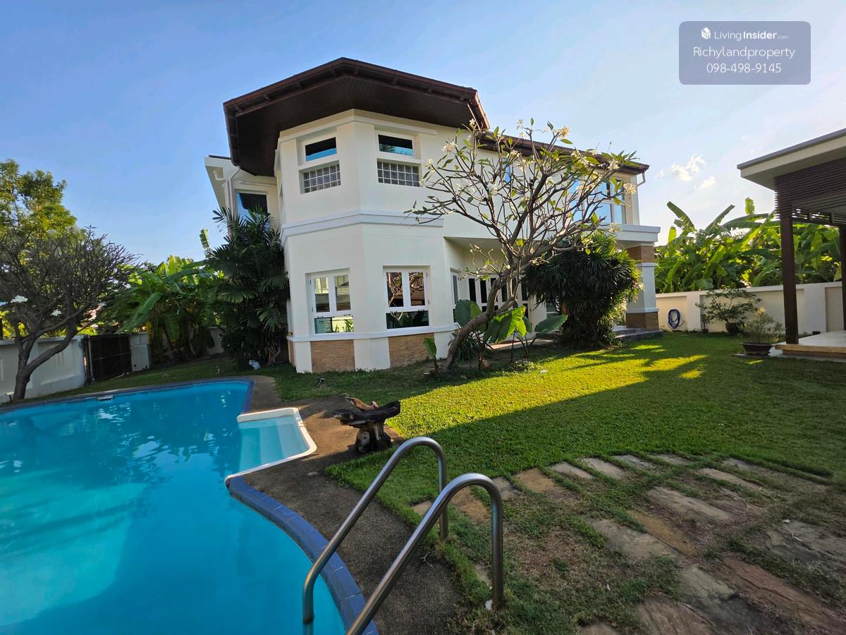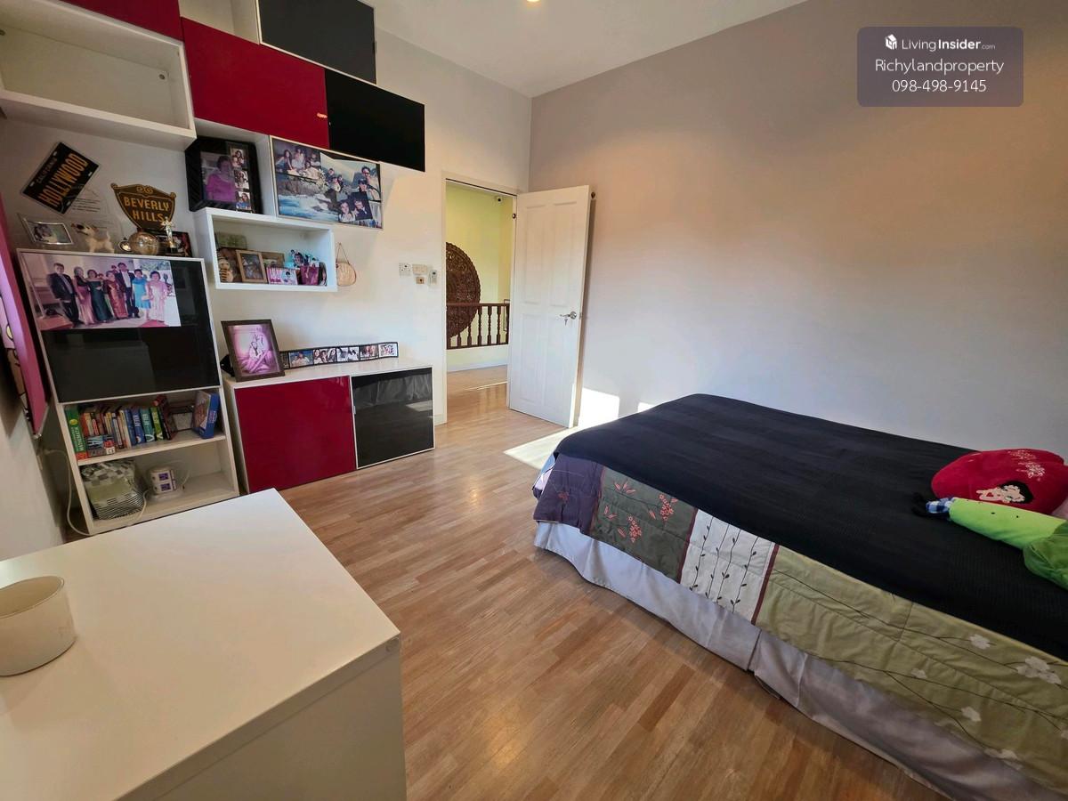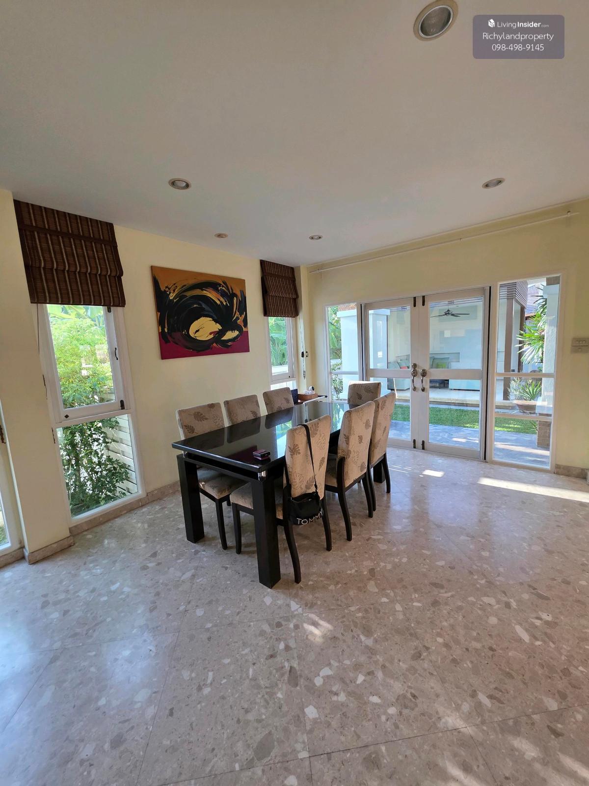 Single house, pool villa for sale, decorated in resort style. Elegant, long lasting The owner of the house built it himself, using good materials from the structure to the decorative equipment Highlights: - Beautiful, shady house. Strong structure Located in a location with potential Worth investing in the long term - Good location, close to the Orange Line, Nom Klao Station, only 200 meters - The village location is next to the main road, no need to enter a deep alley, travel in and out, very convenient - Near the entrance and exit of the motorway, travel to Suvarnabhumi in just a few minutes - there is a new intersection connecting Krungthep Kreetha Zone which is a potential location Luxury residential center - It is a house that the owner built himself, so he is confident that he will get a house that has The structure is strong and up to standard. Uses i18 piles. The floor is firm and does not collapse. Details: - Area 132.2 square wah/ usable area 400 square meters - 4 bedrooms, 2 living rooms, 1 work room, 3 bathrooms - 4 indoor and outdoor parking spaces with EV charger - Maids room with attached bathroom Separated from the house - There is a pavilion to relax outside the house. The cushion work uses Sunbrellas world-class brand material as a material especially for the poolside. It is resistant to sunlight and reflects water - Swimming pool with sand filter system, taken care of every week, works well - with built-in furniture and every electrical appliance and kitchen equipment from Siemen, dishwasher Price only 23,000,000 baht Transfer fee 50:50 If interested, contact: Ratchaya Yuwaphan Contact number Line: rachayarp email : Contact email 🏘Richyland Property Agent Real estate agent Complete service for buying - selling - renting along with credit consulting services All In One Service for all property