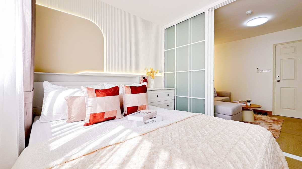 4 minutes to #BTSOn Nut 🚄 Best value in Sukhumvit area ✨ Beautiful room, fully decorated. One bag can move in Down payment 0 baht, installments start at 6,xxx, salary 16,xxx, can get a loan 📌 Lumpini Center Sukhumvit 77 • 1 bedroom, size 28 sq m. • 1 kitchen with balcony • Balcony facing north/bed facing east 👉 Common area - Common fee 22 baht/sq m - Fitness center, river view - Swimming pool, sauna - Convenience store - Laundry and drying shop - 24 hour security