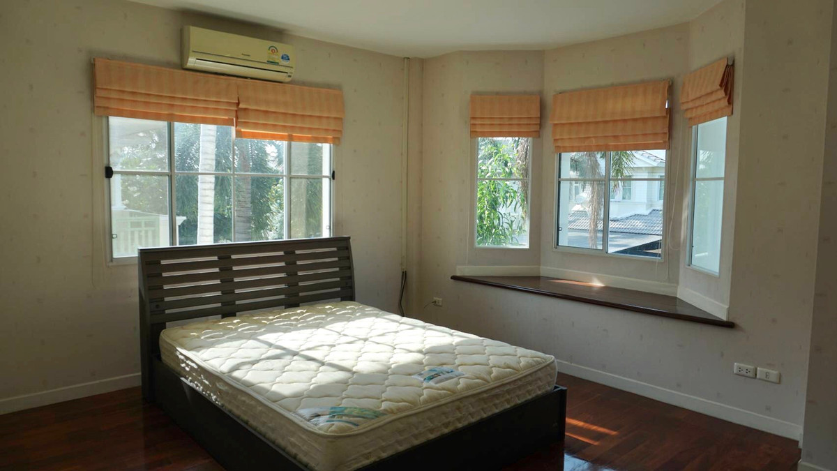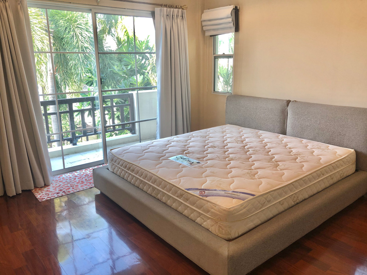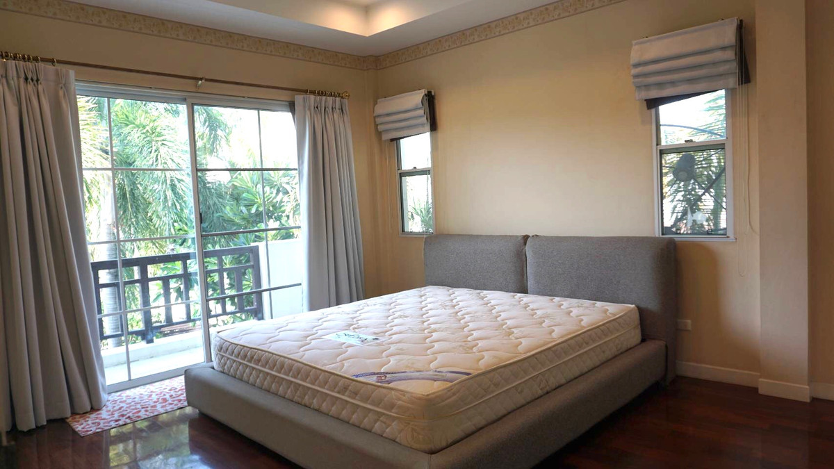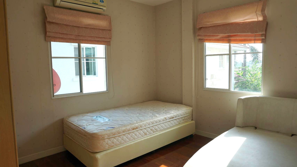 Single house project "Nantawan Suvarnabhumi" (Nantawan Suvarnabhumi) has many entrances and exits. Usable area 215 square meters 2-storey detached house 75 square meters Usable area 215 square meters 3 bedrooms, 3 bathrooms Fully furnished. There is a washing machine 168-0233 . If interested, contact Wipada (Nok) Contact number idline: nokhome is a detached house / villa project located in the area of Racha Thewa Subdistrict, Bang Phli District, Samut Prakan Province, near Suvarnabhumi Airport. Suitable for people who want a large house in a convenient location for travel between Bangkok - Bangna - Trat. and close to the expressway/motorway Project details The project has a total of approximately 238 units of detached houses and has been completed since approximately 2017 It is a 2-story detached house, family style. With basic project amenities such as clubhouse, swimming pool, recreational park, etc. (subject to announcement) Location next to King Kaew Road, easy to enter and exit, close to Suvarnabhumi Airport, Mega Bangna, Robinson Department Store and HomePro Lat Krabang.